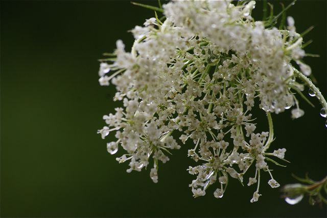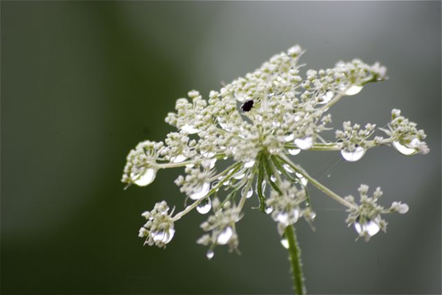 Ich habe mich bislang immer gesträubt Regenfotos zu machen. Aber was anderes bleibt mir diesen Sommer wohl nicht übrig. Die hübsche Dolde ist mit hoher Wahrscheinlichkeit eine Möhre. Erkennbar an dem Mohrenauge in der Mitte der Dolde.