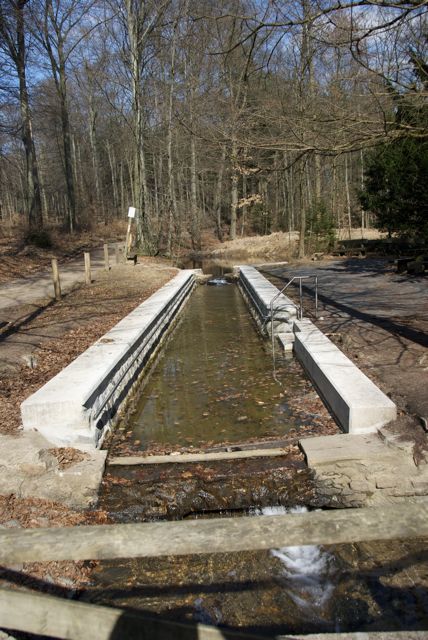 Mitten im Königsforst gibt es dieses Wassertretbecken, das offensichtlich vor Kurzem restauriert wurde. Hier wurde der Giesbach künstlich aufgestaut und in das Becken geleitet. Besucher sollen, laut Pfarrer Kneipp, in Storchenmanier durch das Wasser schreiten immer einen Fuß im Wasser, einen aus dem Wasser. Anschließend die Füße nicht trocknen, sondern ab in die (Woll-)Socken und weiter wandern. Der Gesundheitseffekt für Abhärtung und Kreislauf stellt sich durch den Kälteschock und die anschließende Erwärmung ein.
