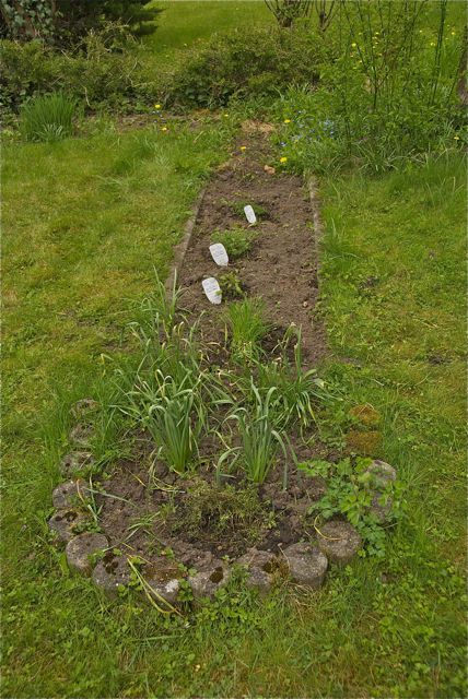 Das ehemalige Rosenbeet wurde von Hahnenfuß und Brennesseln befreit und der Anfang zum Kräuterbeet gemacht.