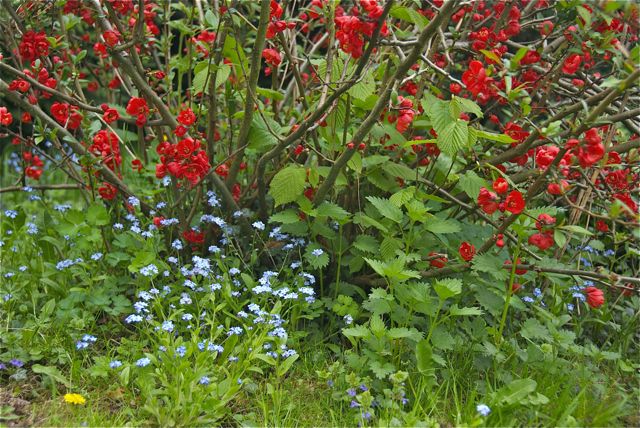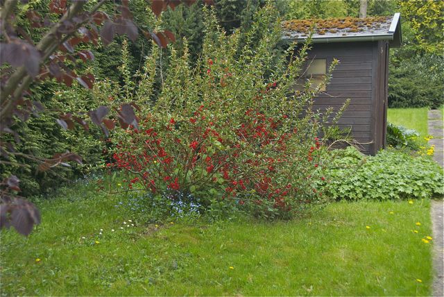Als meine Großeltern hier noch die Regierung stellten, war es ein Gemüsegarten. Gefühlte 90% Kartoffelacker. Mein Vater machte daraus einen Obstgarten mit schönen Obstbäumen. In den letzten 25 Jahren hat meine Mutter alles daran gesetzt, aus dem Obst/Gemüsegarten einen Ziergarten zu machen. Mit Stauden und Ziergehölzen. Seit etwa sechs Jahren ist das Ganze fröhlich verwildert und die Stauden wurden leider von den Ziergehölzen überwuchert. Ein großer Teil der Koniferen ist allerdings mal als winzige Bäumchen vom Laster gefallen, als ich etwa 8 Jahre alt war. Deswegen steht das Zeugs auch viel zu dicht.