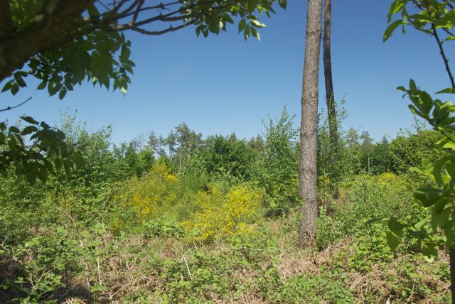 Was gibt es Neues im Königsforst? Auf den Freiflächen, die Kyrill geschlagen hat, blüht gelb der Ginster.