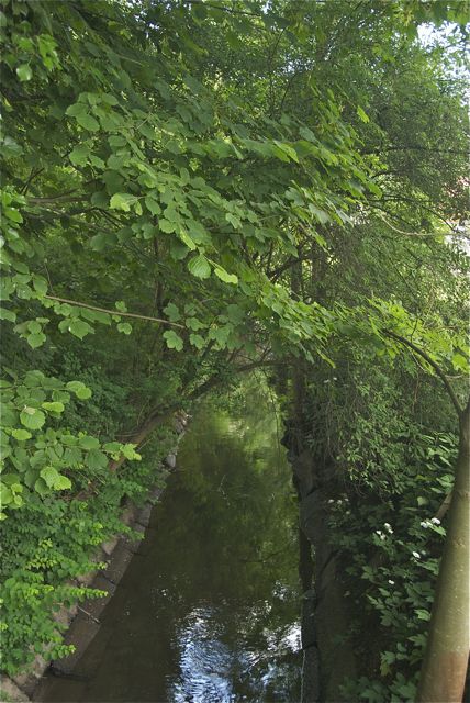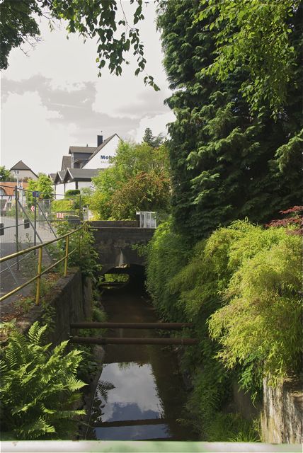 Die Strunde oben war wegen der vielen Mühlen, die sie betrieben hat, höher gelegt. Sie wird in die Kanalisation geleitet. Vorher gibt sie noch etwas Wasser an den Faulbach ab.