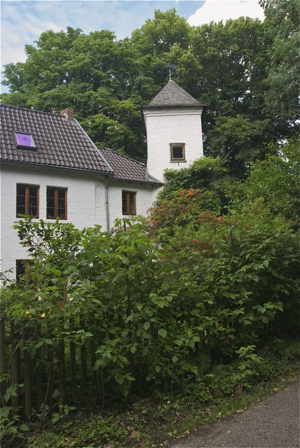 Bald verschwindet er wieder unter der Autobahn und als ich dort aus der Unterführung komme, stehe ich unvermittelt vor einem Mini-Schlösschen:
