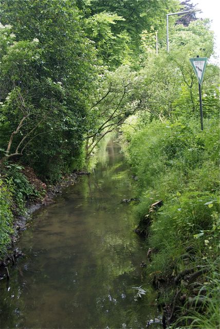 Außerhalb von Brück fließt der Flehbach in einem tief eingeschnittenen Graben, von alten Weiden gesäumt Richtung Merheim. Er verschwindet unter einer Autobahn und ich muss einen kleinen Schlenker fahren.