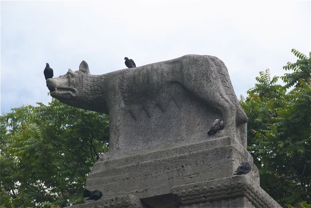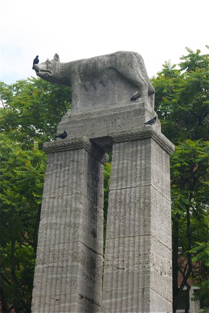 In die Brunnenwand eingelassen sind die Portraits verschiedener römischer Regenten in chronologischer Reihenfolge.