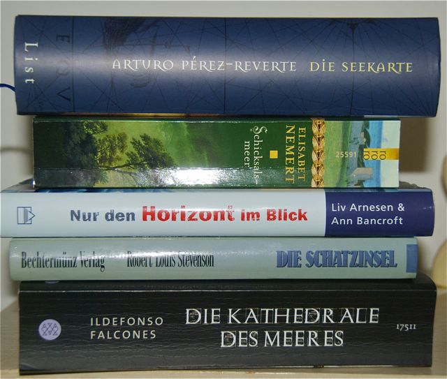 Oben das sind keine Krimis, sondern ein Teil meines MtbR und der Versuch mit dem Aufeinanderstapeln von Büchern eine Geschichte zu erzählen.