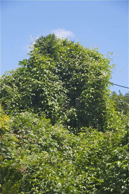 Waldrebe heißt das Zeugs und killt einfach alles was sie überwuchert. Bei mir hat sie schon mindestens drei Bäume auf dem Gewissen. Und ich wette, der Hintere Mast wird auch nur noch von Clematis zusammengehalten.