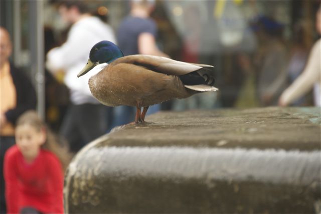 Völlig unschuldig an der Misere ist dieser Enterich, der sich mitsamt seiner Frau ausgerechnet im Getümmel der Domplatte niedergelassen hat.