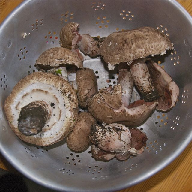 Als kleine Entschädigung dafür, dass fast alle Tomaten schon im grünen Zustand vergammelt sind, gibt es heute Überraschungs-Champignons aus dem Garten.