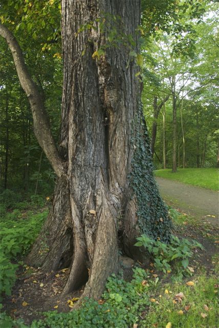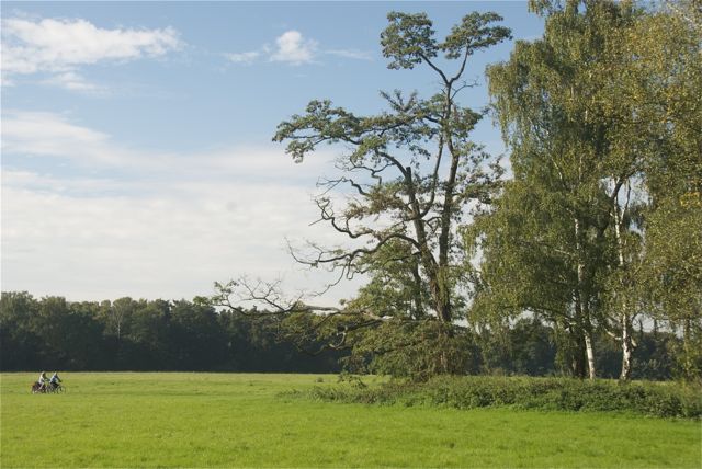 Ich biege scharf rechts ab, an einer letzten alten Eiche vorbei.