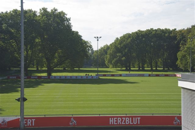 Weiter geht es an den Trainingsanlagen und dem Stadion des 1. FC Köln entlang. Im Geißbockheim gibt es ein verdientes Mittagessen mit Blick auf drei lustlose Kicker.