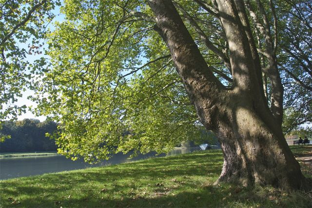 Die schöne Platanenallee führt zum Decksteiner Weiher.