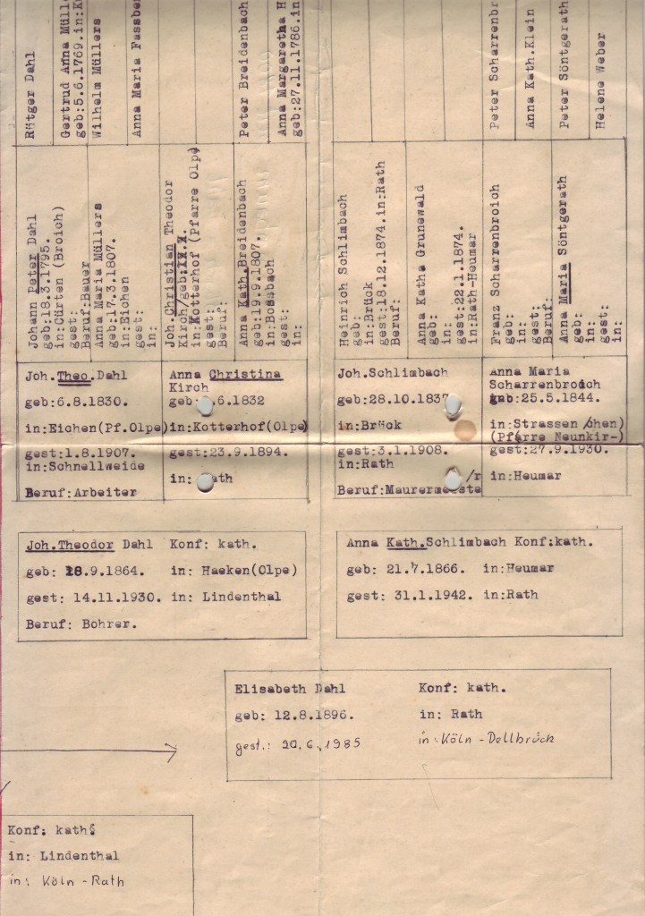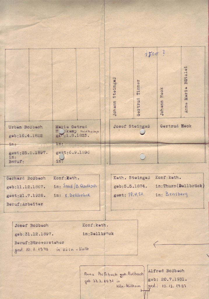 Edit 2025: Die Ahnenforschung war nicht, wie ich glaubte, ein Verschrobenes Hobby meines Opas, sondern die Stammbäume wurden für den Ariernachweis gebraucht. Mein Vater sah überhaupt nicht Blond, blass und blauäugig aus, ich auch nicht.