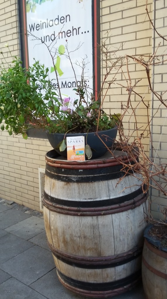 Die Brücke ist gut zum Releasen, aber es wehte ein eisiger Wind am Rhein. Außerdem braucht man da Tüten, um die Bücher aufzuhängen. Und ich vermeide Tüten.