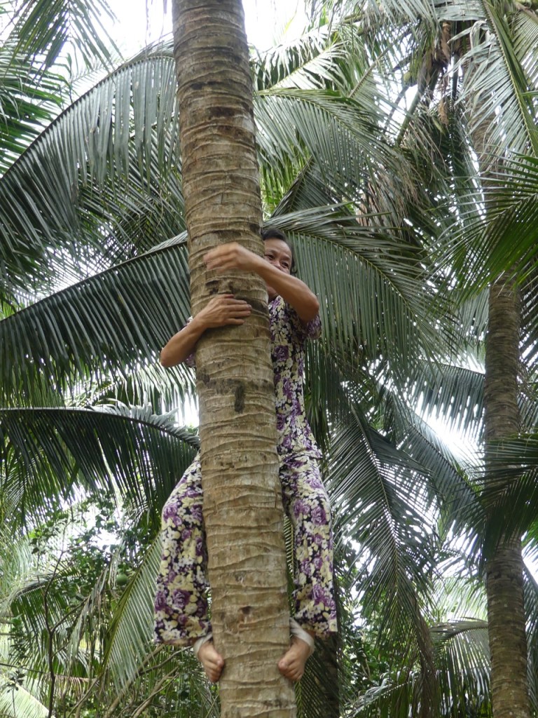 Auf schmalen Wegen geht es weiter durch die wunderschönen Kokosgärten von Ben Tre.