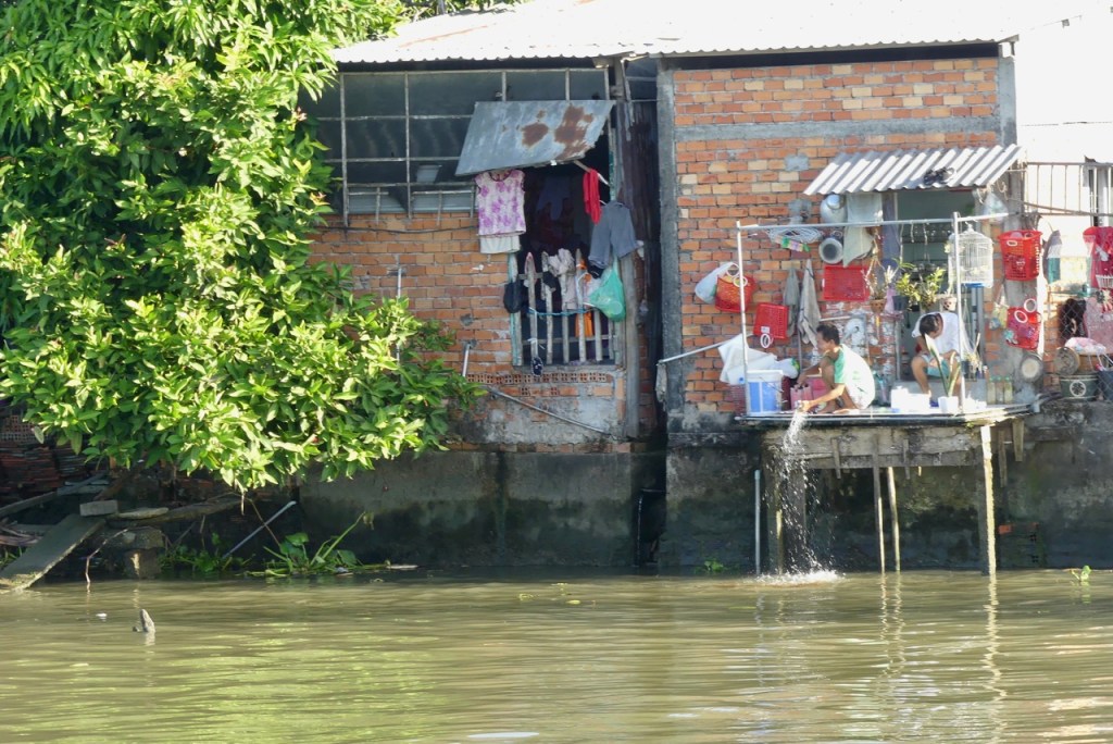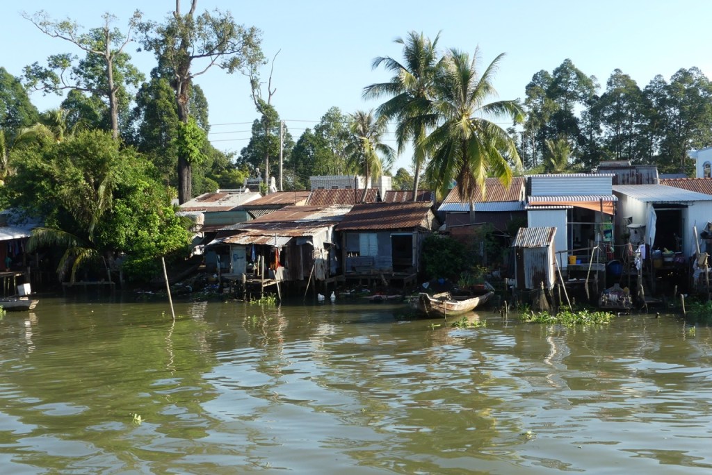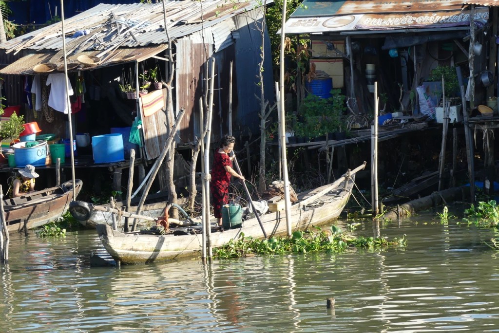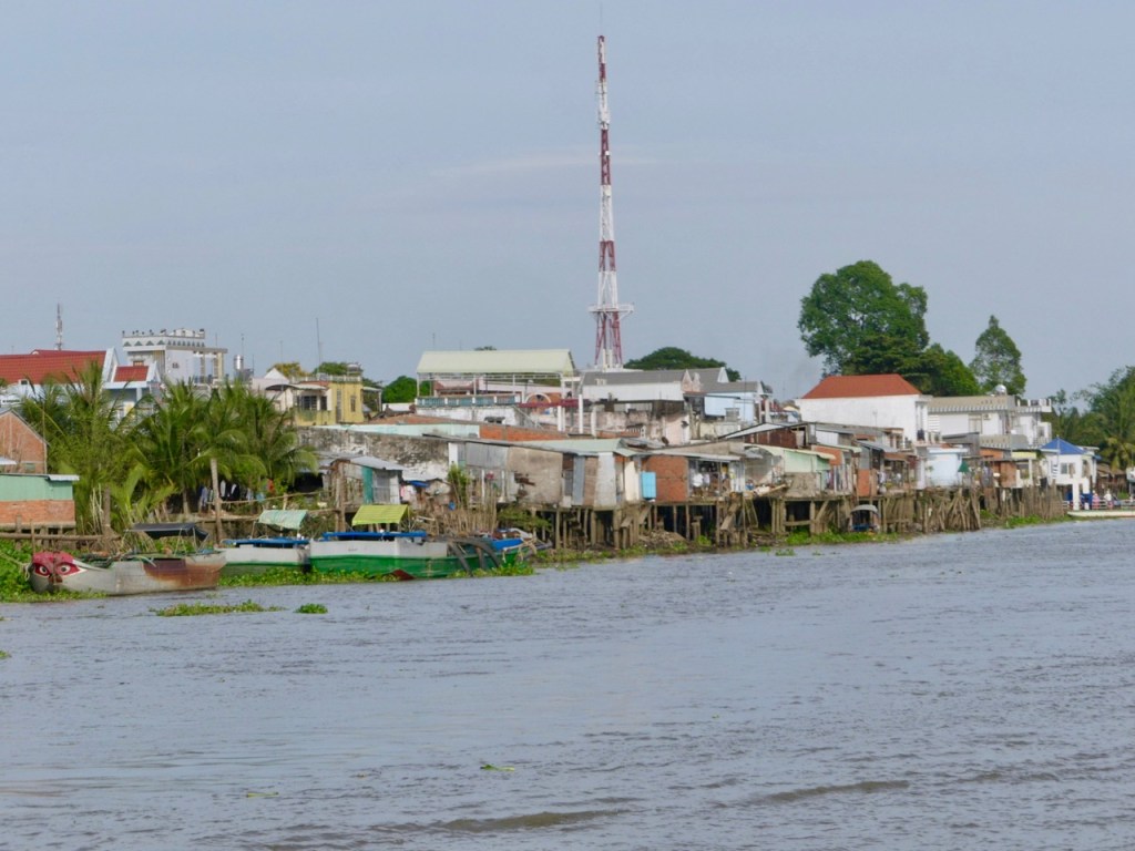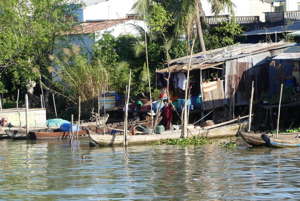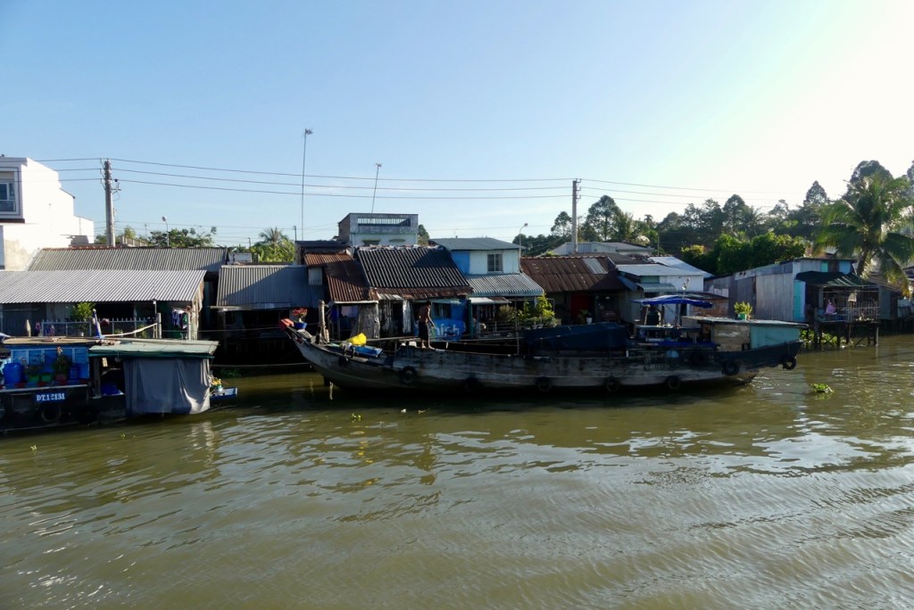 Nach der sehr schönen Radtour um Ben Tre und dem Besuch einer Cocos-Bonbon-Manufaktur, werden wir mit einem kleineren Boot zu einer Dachunke übergesetzt.