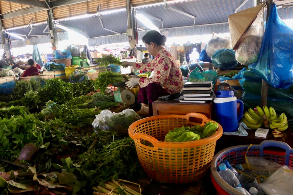 In Sa Dec sind wir zunächst über den Markt spaziert. Neben allen möglichen Gemüsesorten, Obst und Fleisch, gibt es auch lebende Fische, gehäutete, aber noch lebende Frösche und abgezogene Ratten. Die erspare ich Euch mal.