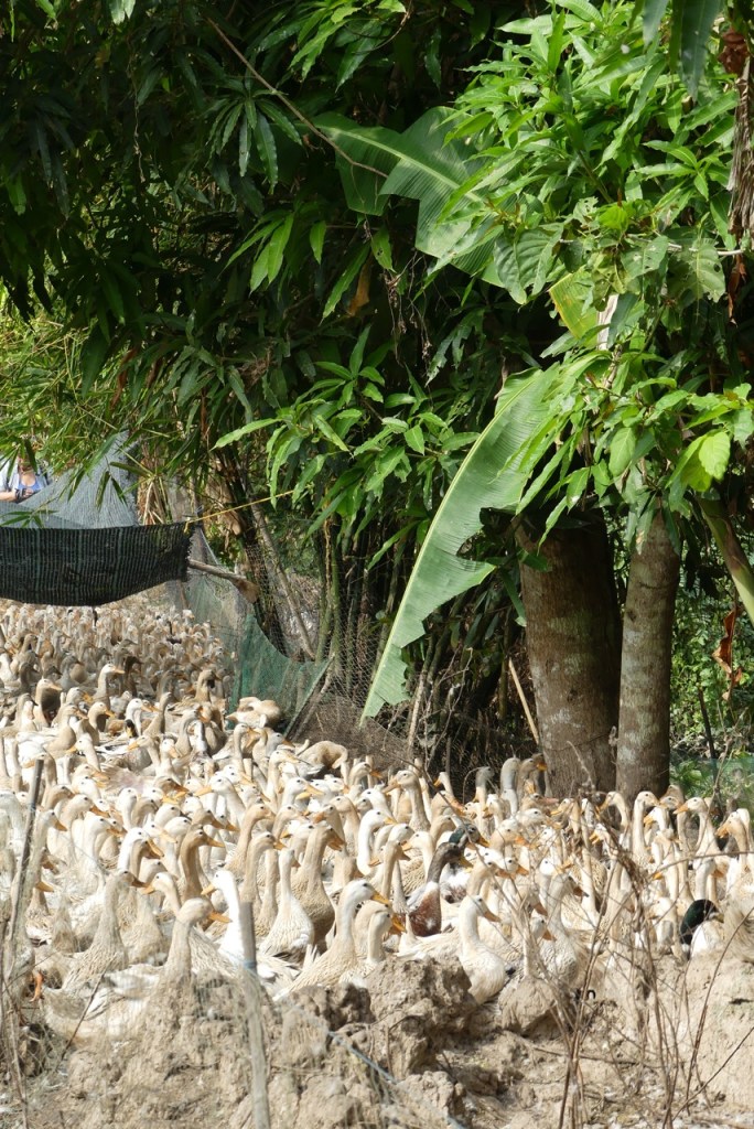 Gänse und Enten werden nicht nur für Eier und Fleisch gezüchtet, sondern sie halten die Felder frei von Schnecken und düngen sie.