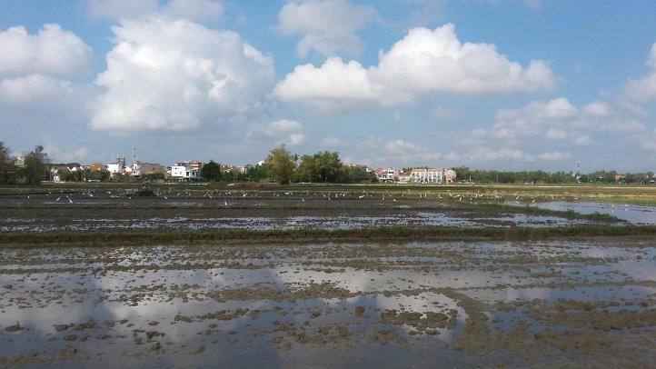 Die Radtour führt aus Hoi An heraus zuerst durch die Reisfelder bis zu den Gartendörfern. Dort mache ich eine Pause und jemand schnappt sich mein Rad. Nur eine Verwechslung.