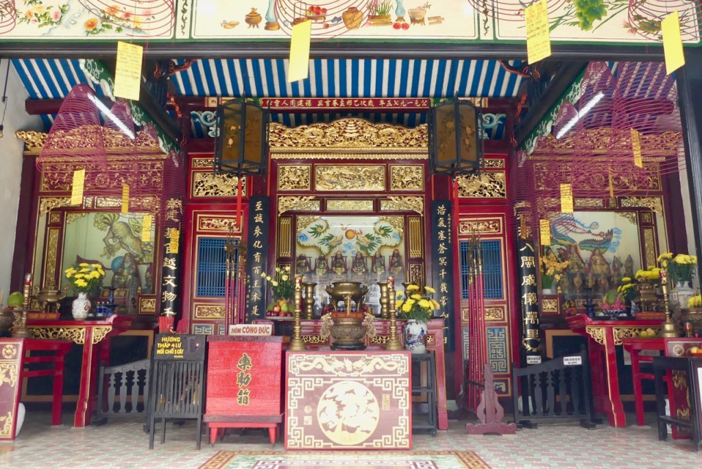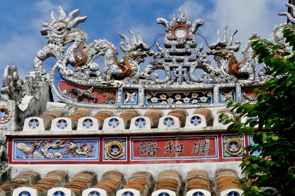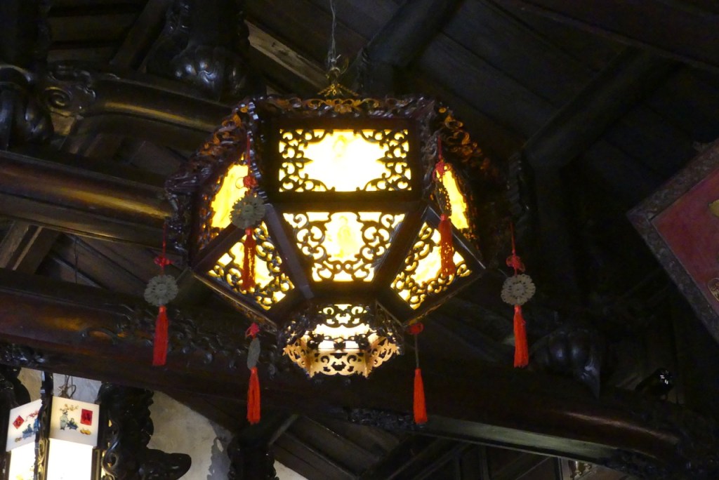 Wir besuchen die Versammlungshalle der Chinesischen Händler aus Fujian. Neben der Schutzgöttin der Seeleute und dem Gott des Reichtums, werden, haben auch die Oberhäupter der ersten sechs Familien und die Urammen ihre Altäre.