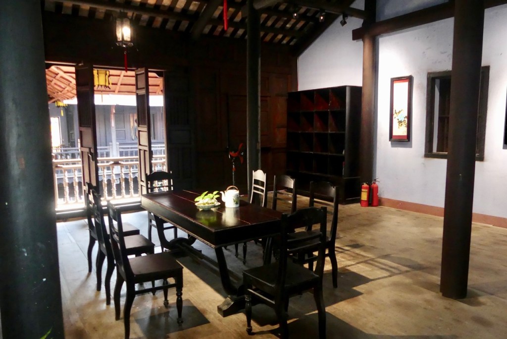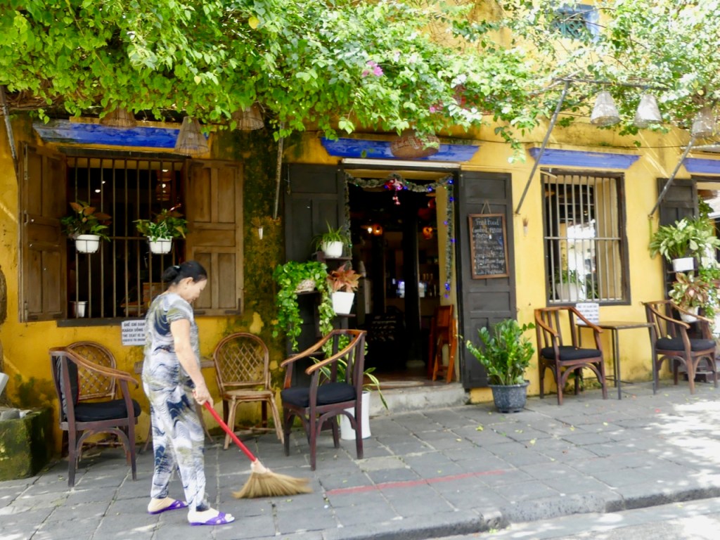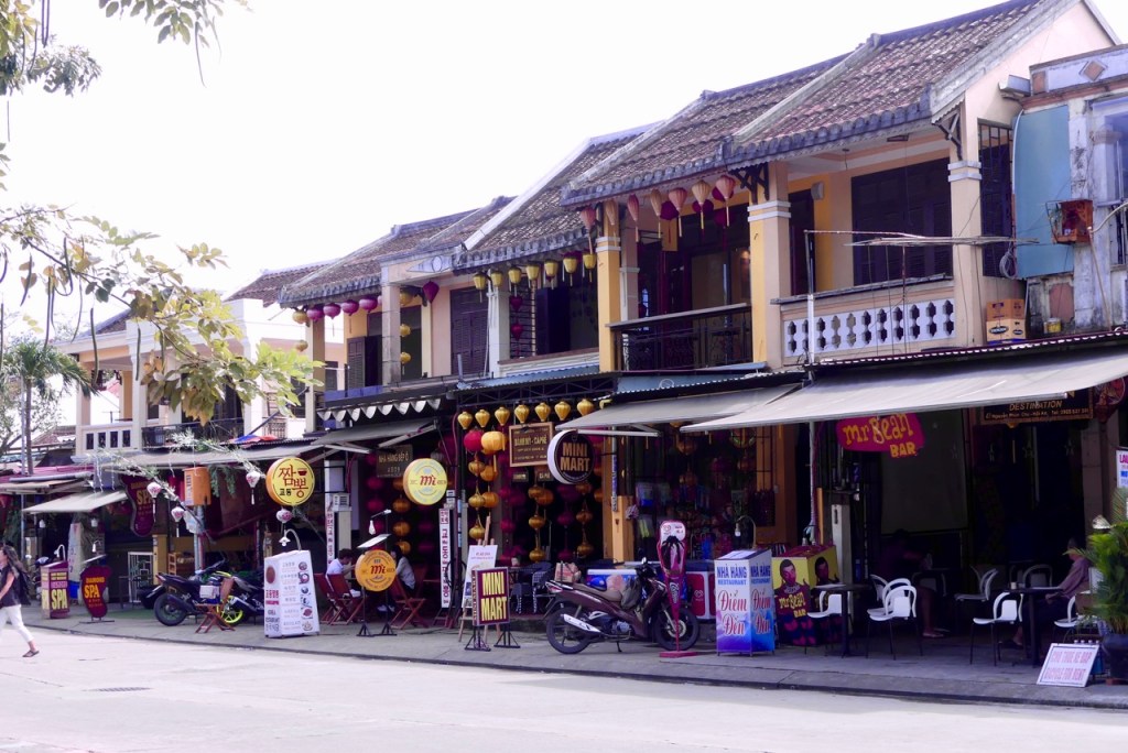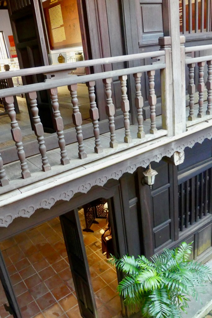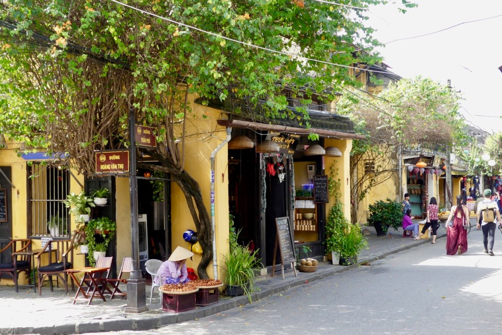 Alle Häuser in Hoi Ans Altstadt haben zwei Eingänge, zu zwei parallel verlaufenden Straßen und einen Innenhof. Man kann also in einem Haus zwei Geschäfte an zwei Straßen haben. Clever gemacht! Die beiden Eingänge leicht liegen schräg versetzt gegenüber, damit die gute Energie im Haus bleibt und der Fußboden ist zur Mitte hin abgesenkt.