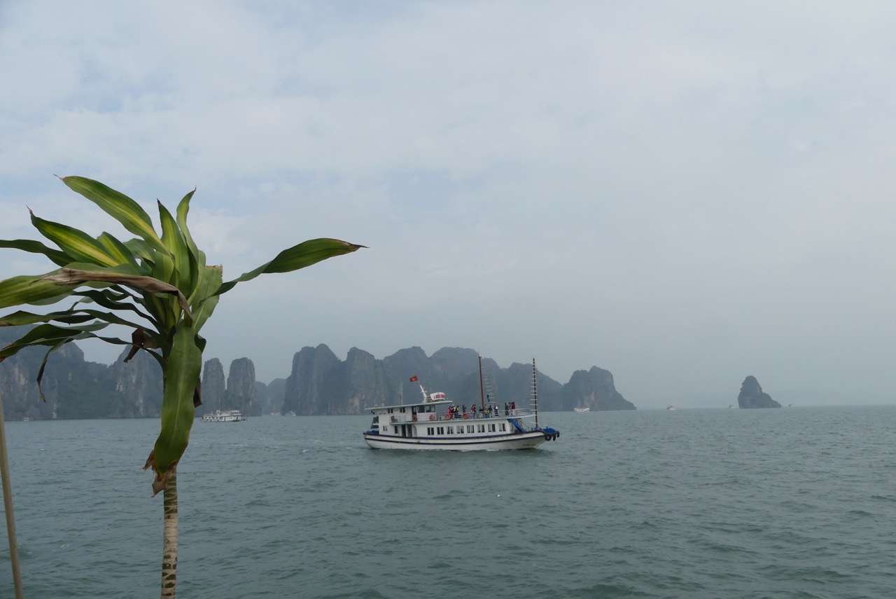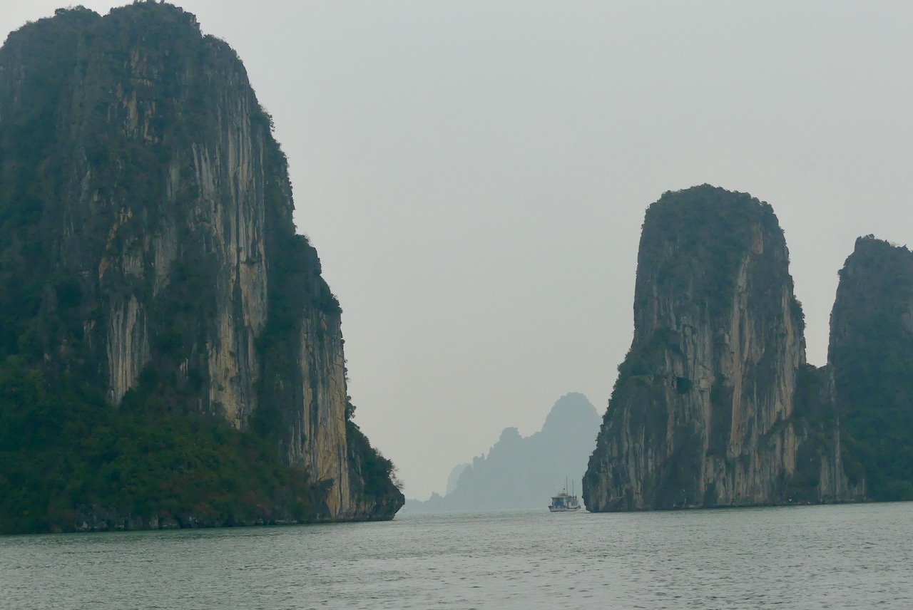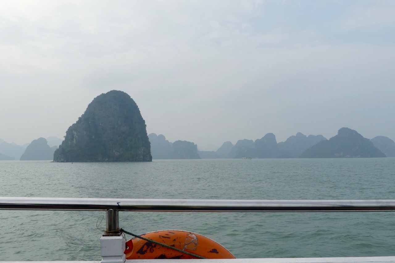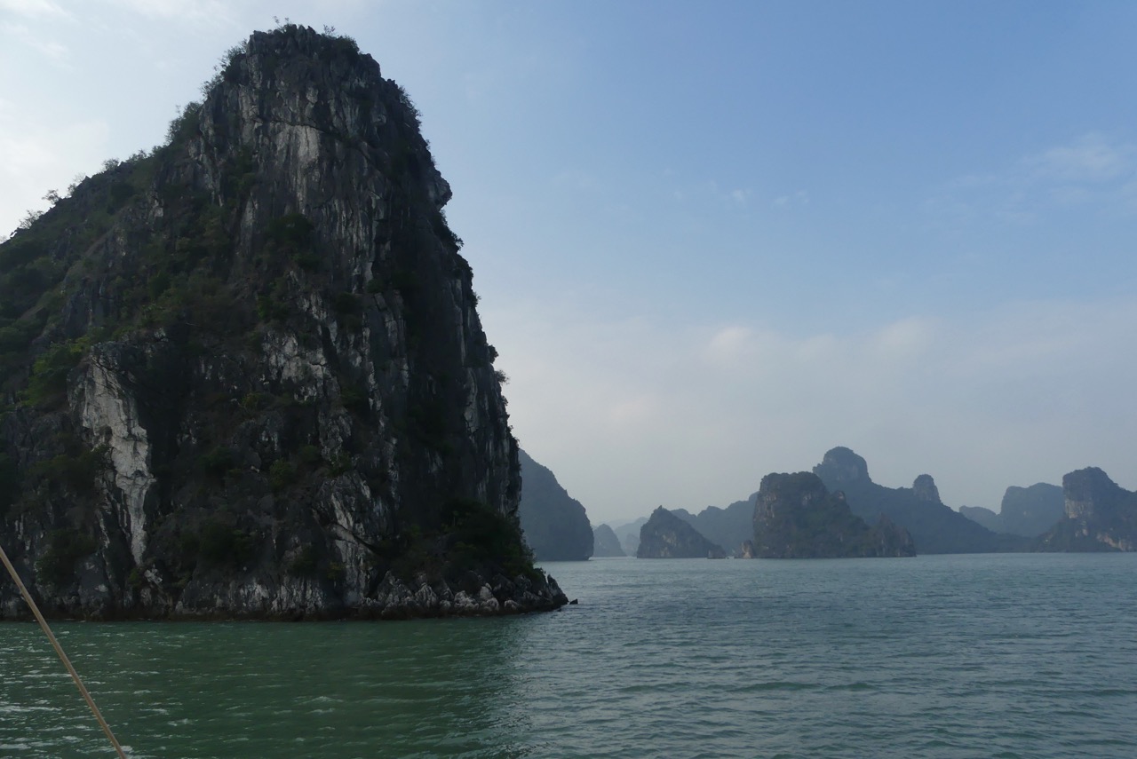 Morgens besteigen wir eine Dschunke, mit der wir den ganzen Tag durch die Ha Long Bucht schippern.