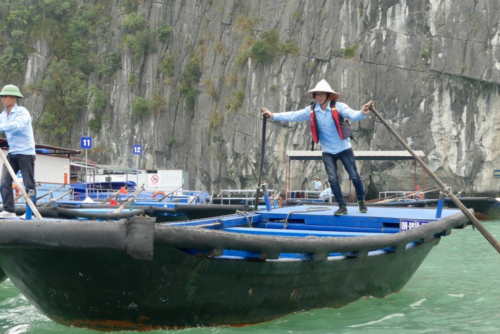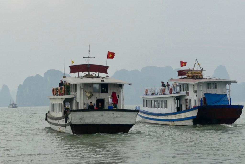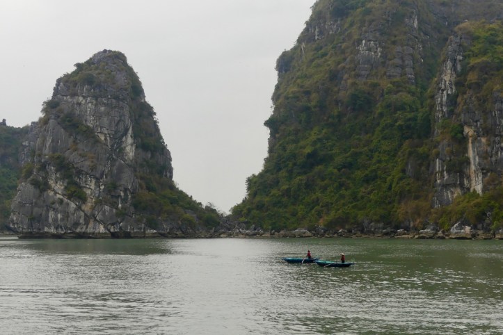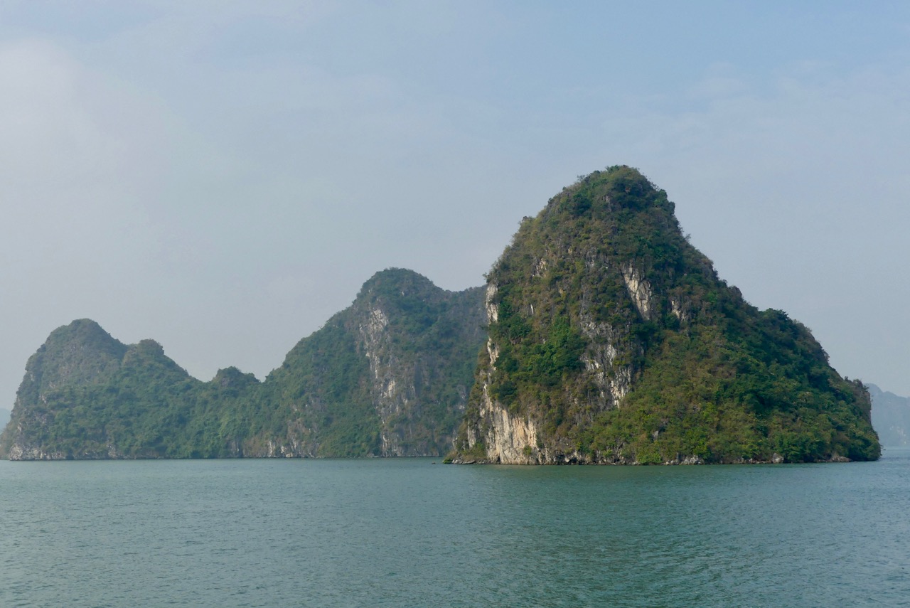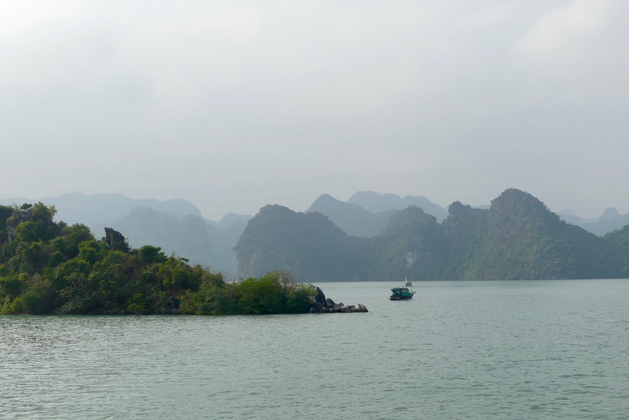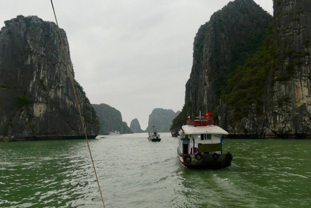 Morgens besteigen wir eine Dschunke, mit der wir den ganzen Tag durch die Ha Long Bucht schippern.
