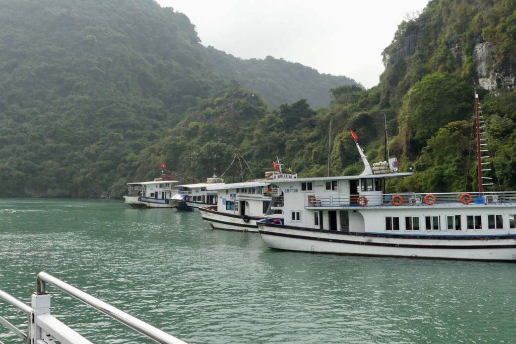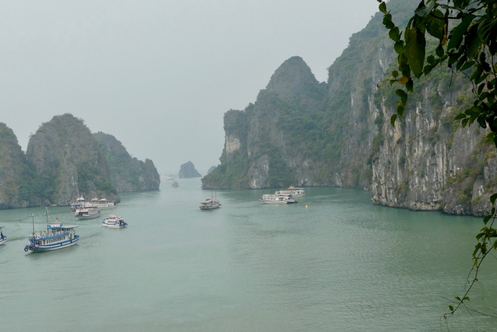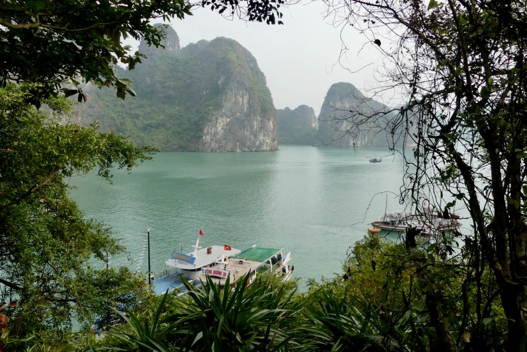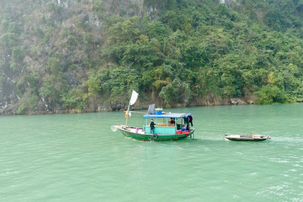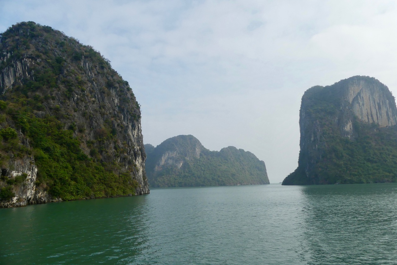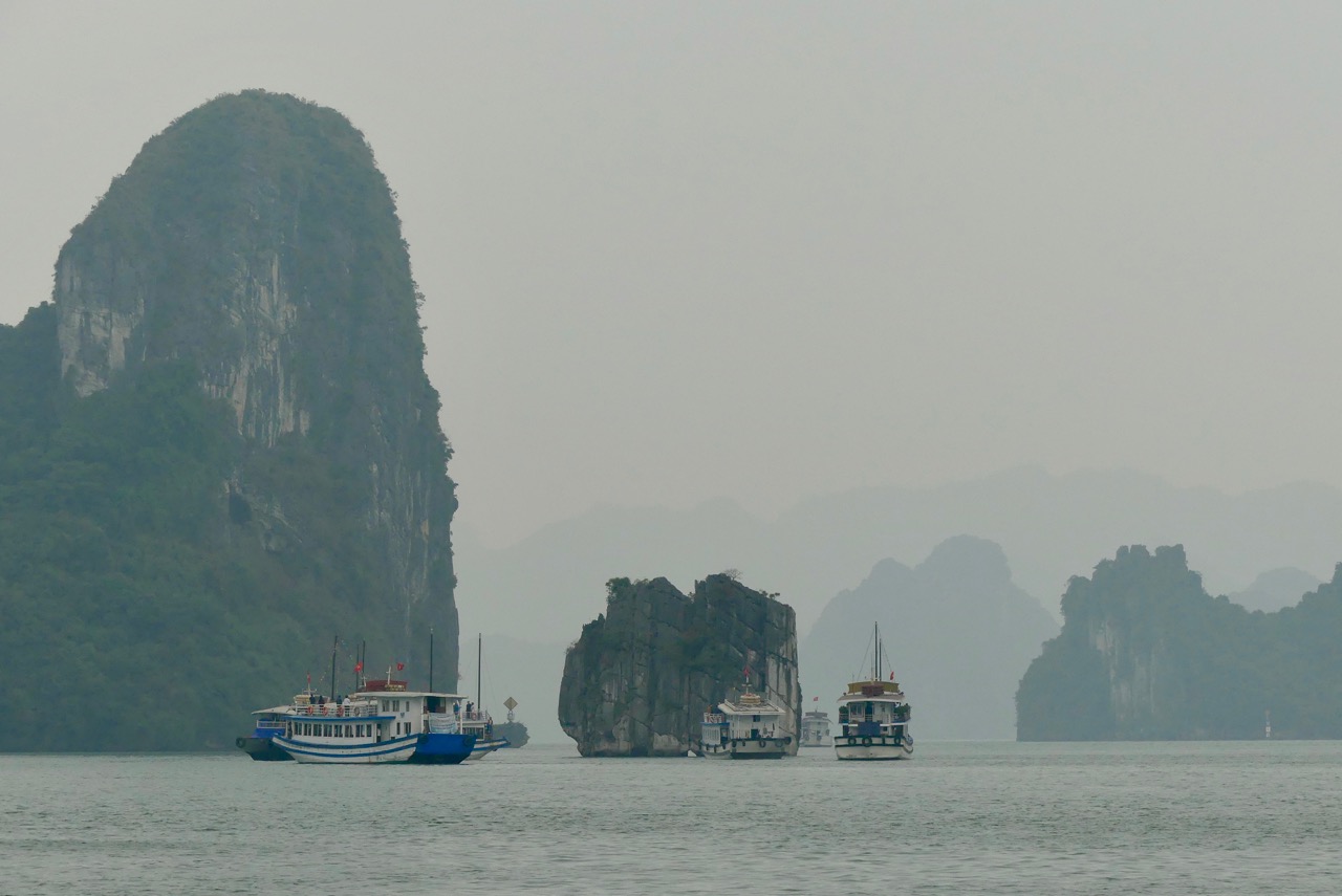 Morgens besteigen wir eine Dschunke, mit der wir den ganzen Tag durch die Ha Long Bucht schippern.