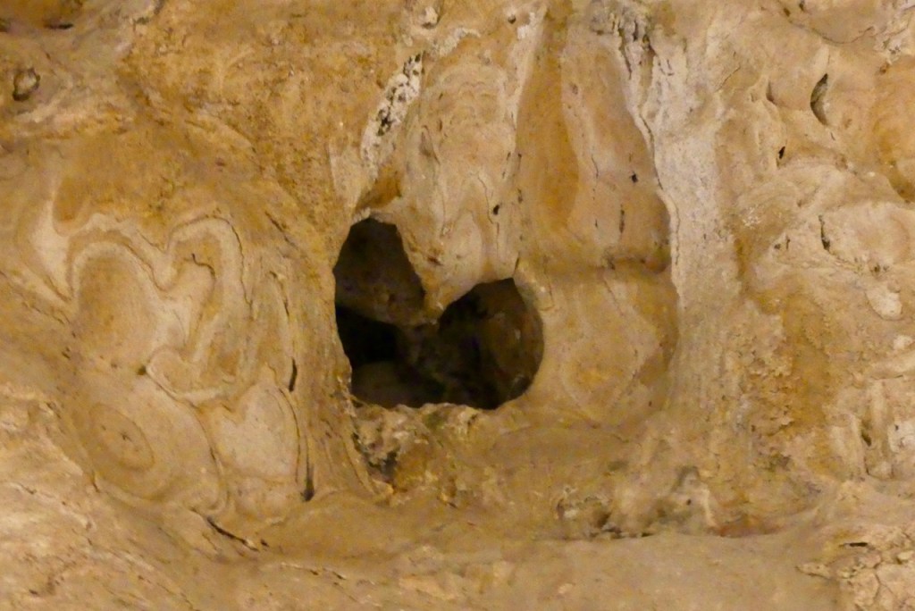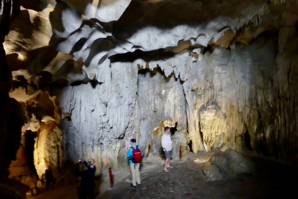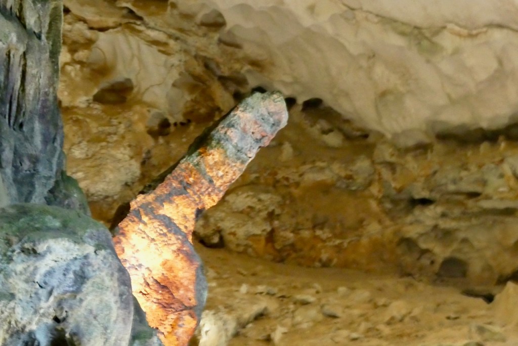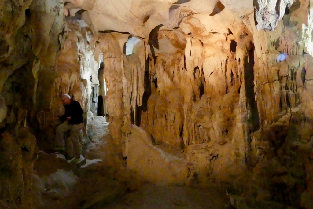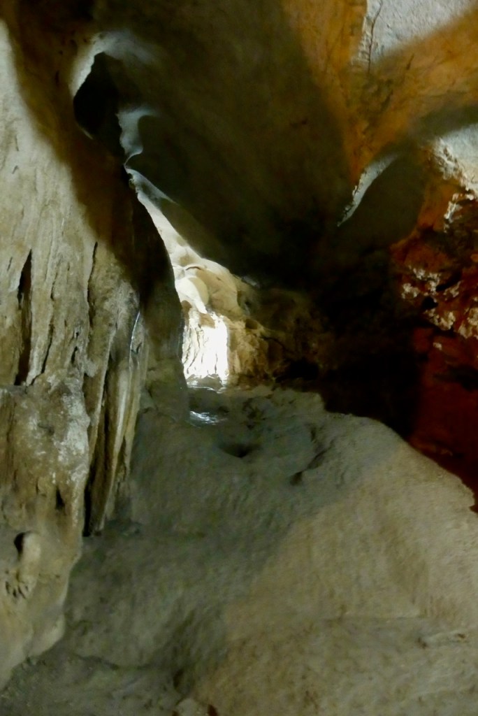 Über steile Stufen erreichen wir wir eine kleinere Tropfsteinhöhle.