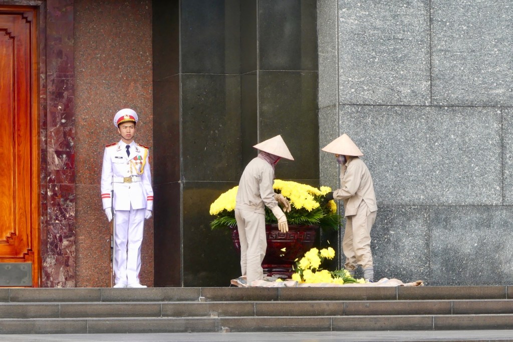 Morgens geht es zunächst zum Mausoleum des beliebten kommunistischen Führers „Onkel Ho“.