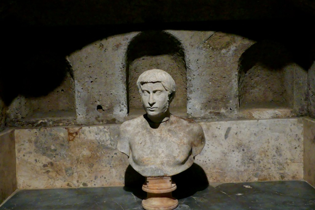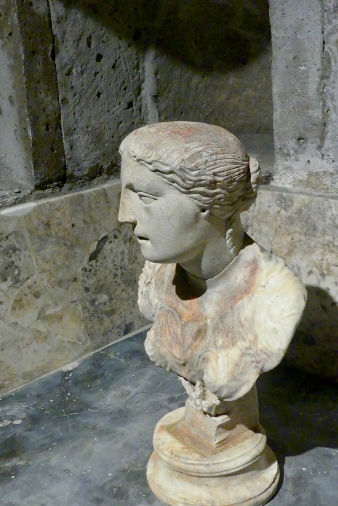 Während zwei der Büsten sehr fein und individuell gearbeitet sind, wirkt die dritte etwas merkwürdig: schlicht das Gesicht, brilliant das Gewand. Ja, Marmor war teuer und die Römer haben auch schon das Recycling erfunden.