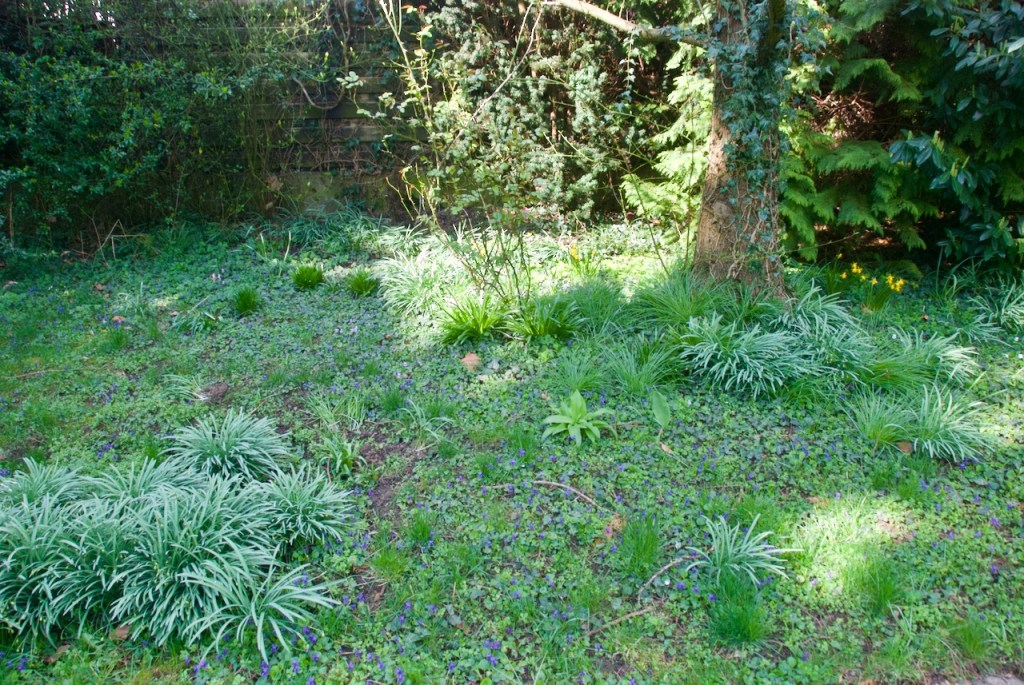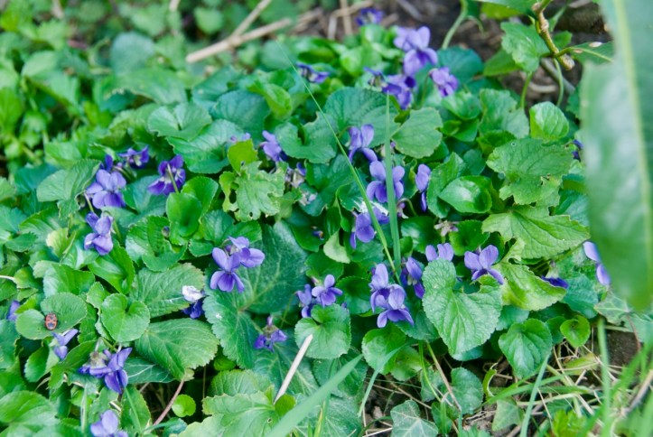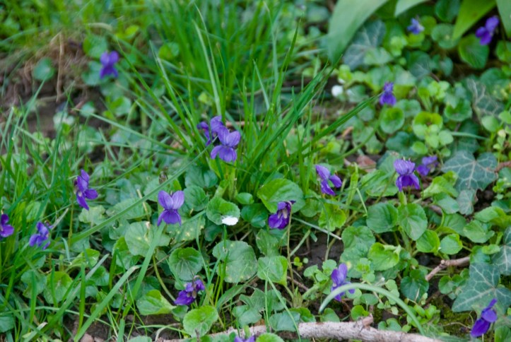 Ja, dass die Veilchen sich so gern ausbreiten, finde ich hier im Vorgarten SEHR rührend! Das Gelbe ist Mahoni, aus dessen Beeren Tante Ella gern Wein machte. Das Rezept ging verloren…