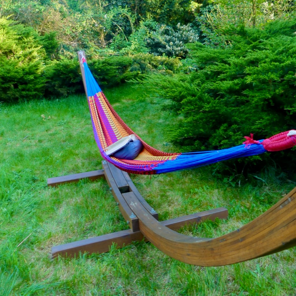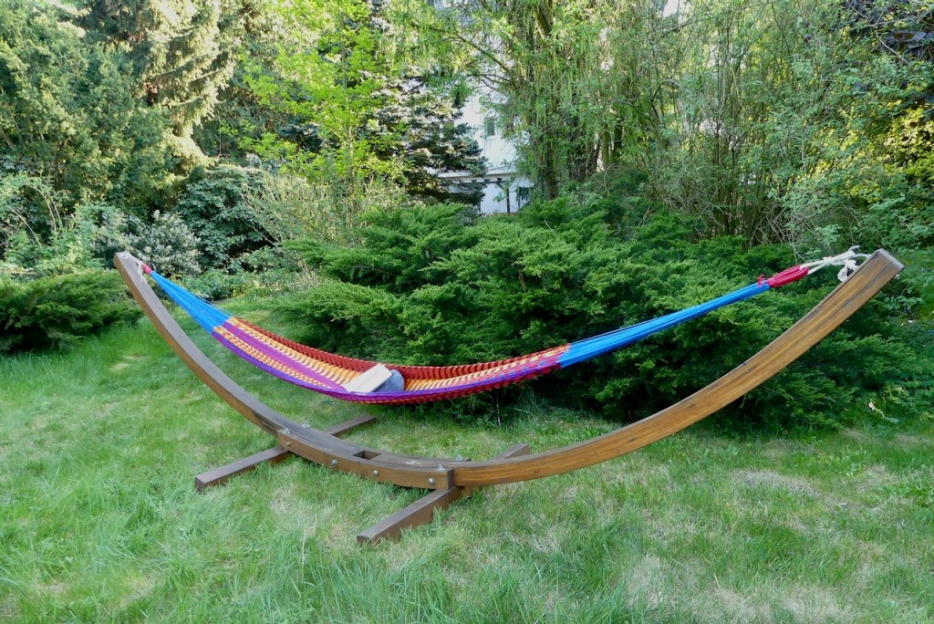 Das ist ja mal ein schicker Hängemattenständer und die Hängematte ist auch toll.