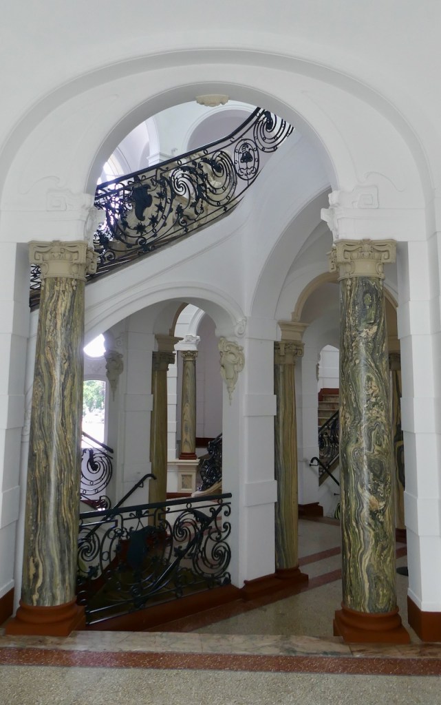In scharfem Kontrast zur neubarocken Fassade und Treppenhaus stehen die angebauten Ausstellungsräume.