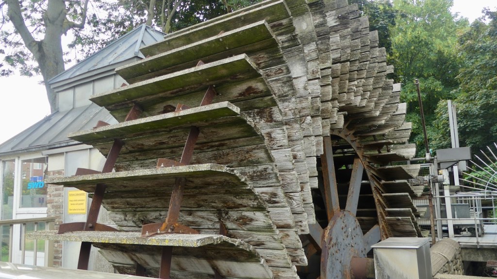 Gleich hinter den Museen ein Wasserrad und noch ein Stückchen Stadtmauer. Allerdings geht es dort nicht weiter. Um das Rathaus herum wuchert noch die selbe Baustelle wie im August des vorigen Jahres.