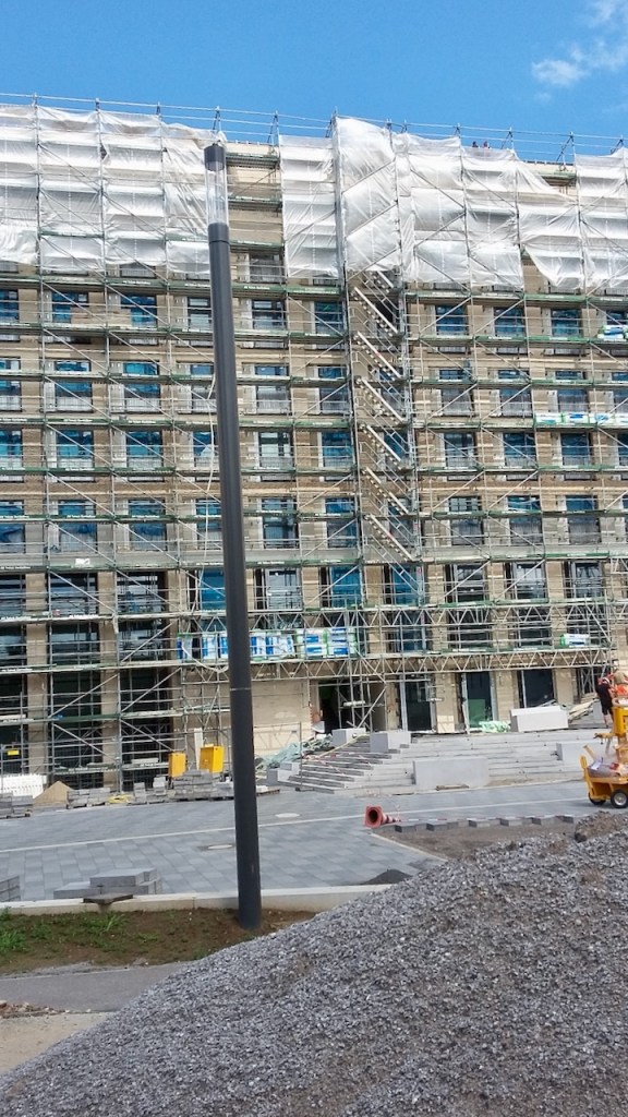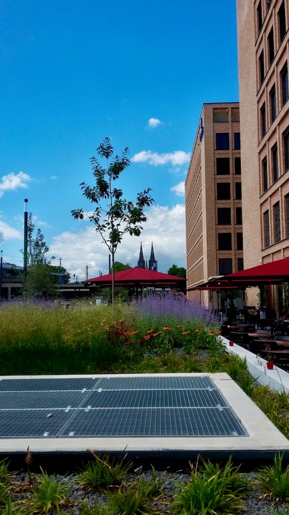 Seit dem Bombenhagel im 2. Weltkrieg waren in Deutz große Freiflächen übrig geblieben. Zwischen der Messe und dem Bahnhof Deutz/Messe entsteht hier die Messe-City. Der erste Bauabschnitt ist fertig und ich war da mal gucken.
