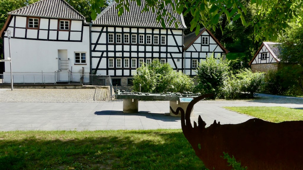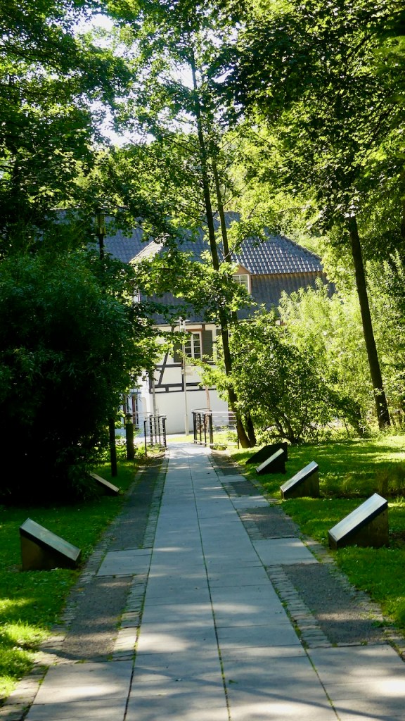 Von Sand geht es schließlich steil bergab ins Tal der Strunde, wo das Papiermuseum alte Dombach auf mich wartet.