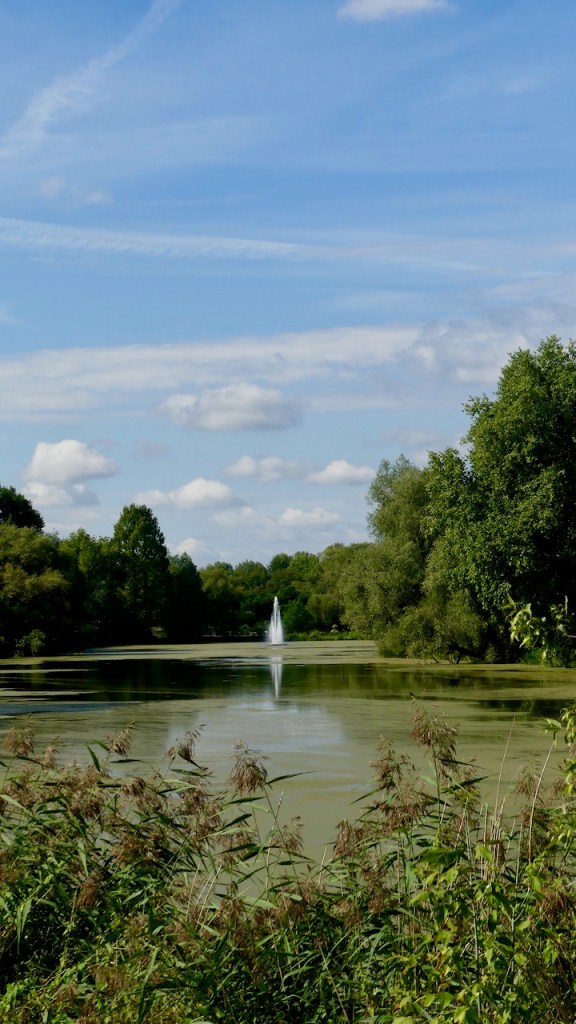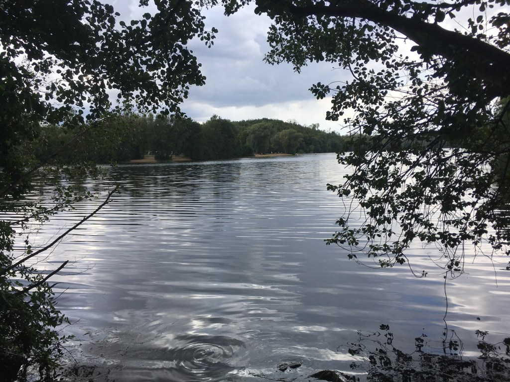 Und dann stehe ich plötzlich im Wald und an einem See und kaum stehe ich da, fängt es an zu schütten. Nur ein kurzer Schauer und eher erfrischend.