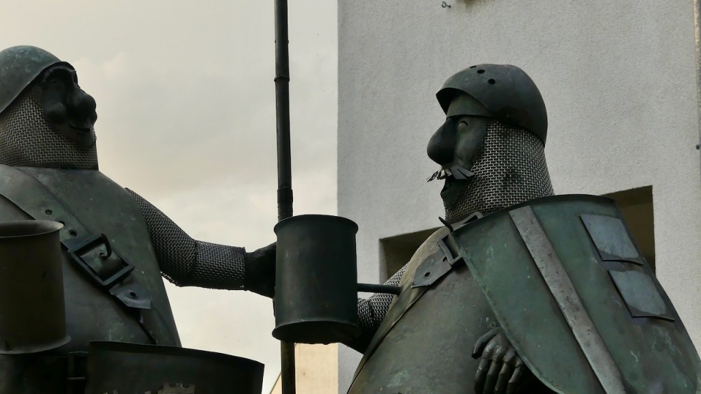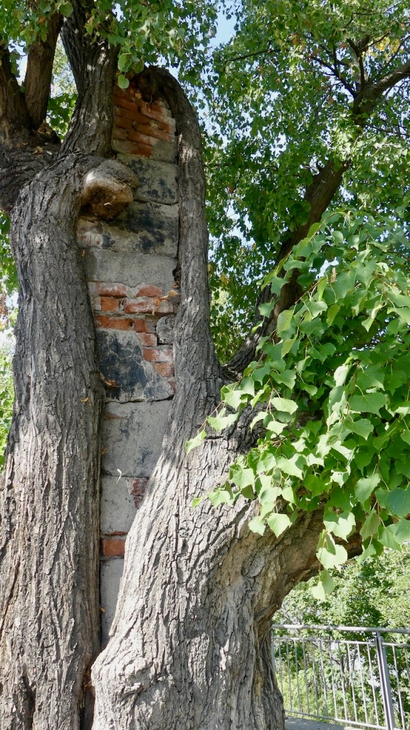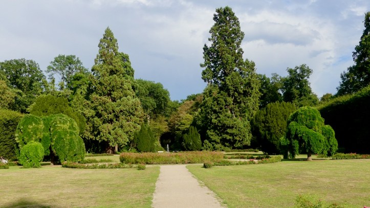 Von innen ist es nicht zu besichtigen, sondern eine Spezialklinik für Psychiatrie, aber der teils barocke, teils naturbelassene Park ist sehenswert. Ich finde eine gute Stelle um das Schloss zu fotografieren. Ein paar Kerle sitzen da, Rücken zu mir, unwesentlicher Bildbestandteil, aber einer von denen rennt mir immer wieder gestikulierend ins Bild und versucht mir irgend etwas zu erklären. Vermutlich die dunkle Variante von „ Sie haben mir ins Gesicht gefilmt“. Erkenntnis des Tages: Ein echter Depp hat keine Farbe. Bei dieser Begegnung bin ich froh, dass ein Wassergraben uns trennt.