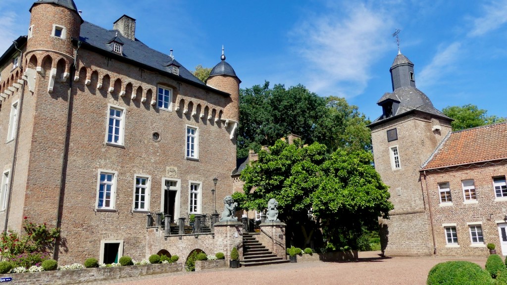 Auf einem Spaziergang erkunde ich das letzte Schloß des Tages: Schloß Bedburg.