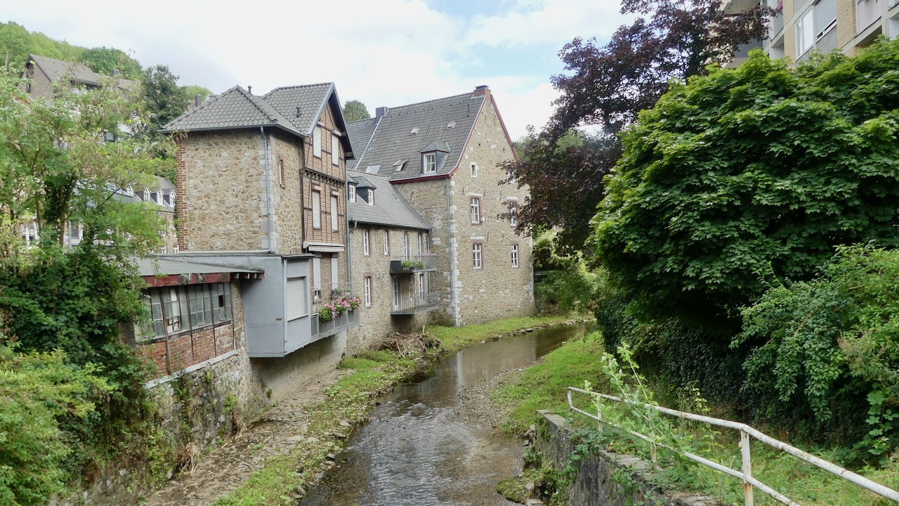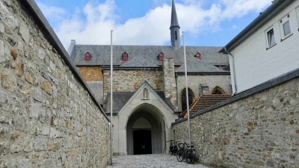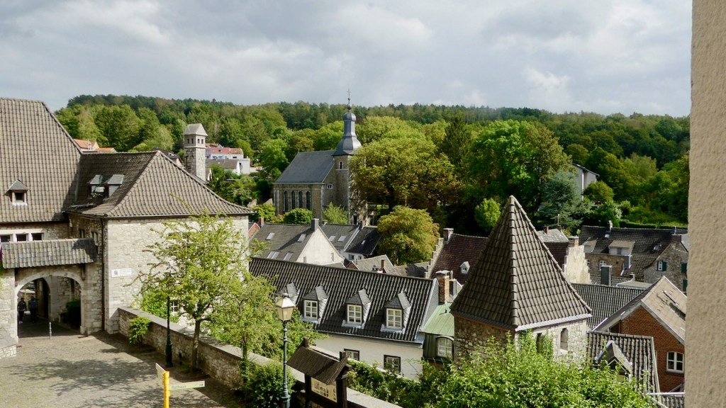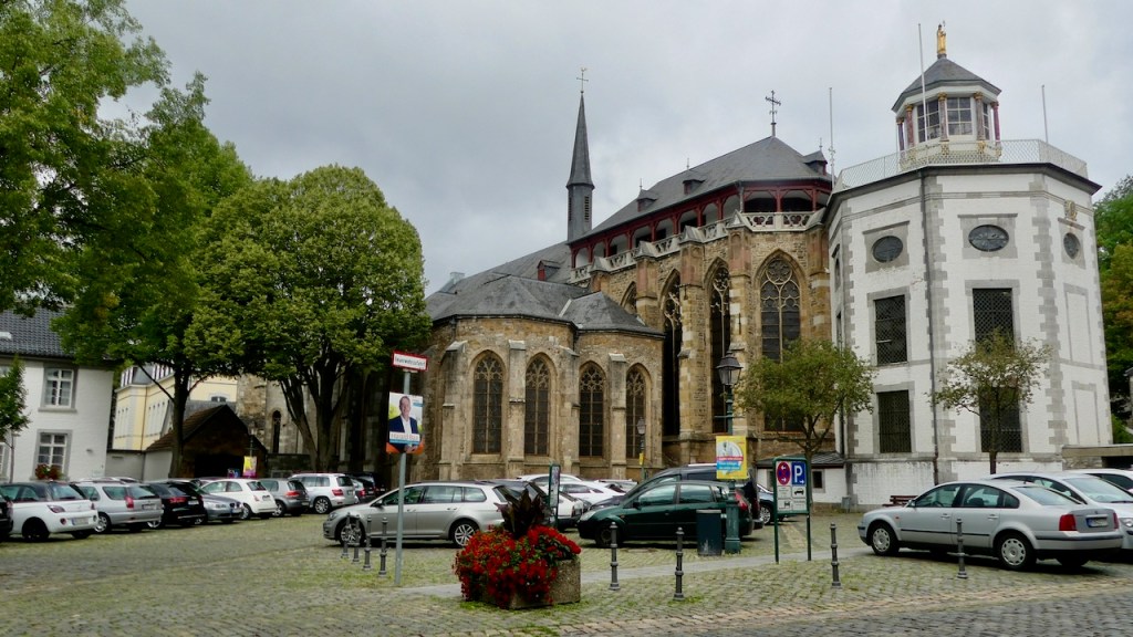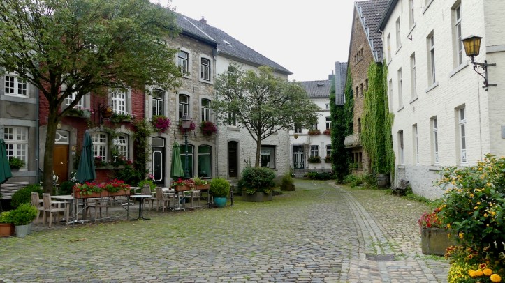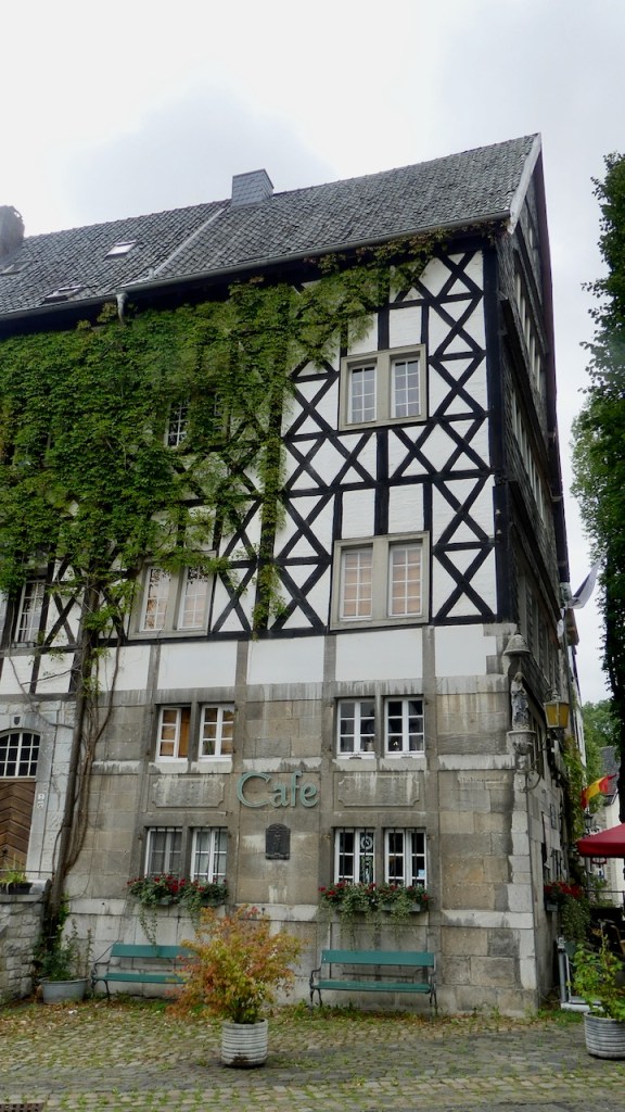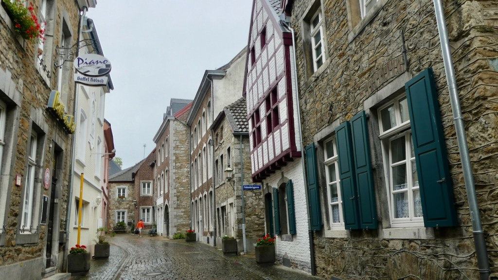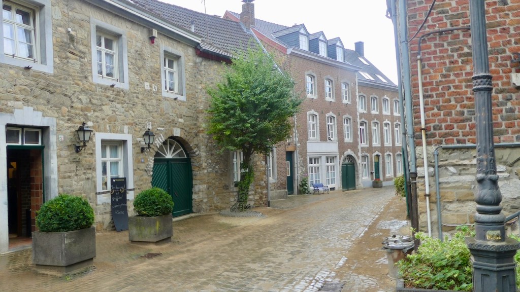 Die schöne Altstadt von Kornelimünster wird leider dominiert von Parkflächen. In der Kirche ist Messe, die Kunstausstellung in der Abtei öffnet erst um Zwölf außer einem wespenverseuchten Selbsbedienungscafe hat noch nichts geöffnet. Ich treibe mich in der Altstadt rum bis ich gründlich durchgefroren bin, rüttele noch einmal an der Tür einer Gaststätte und beschließe,dass ich genug gewartet habe.