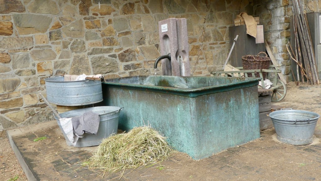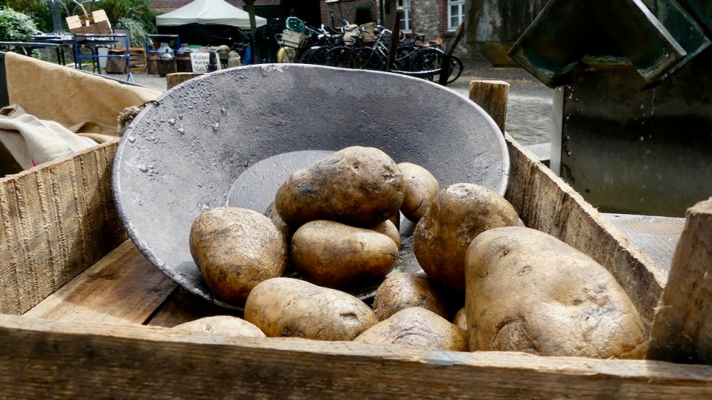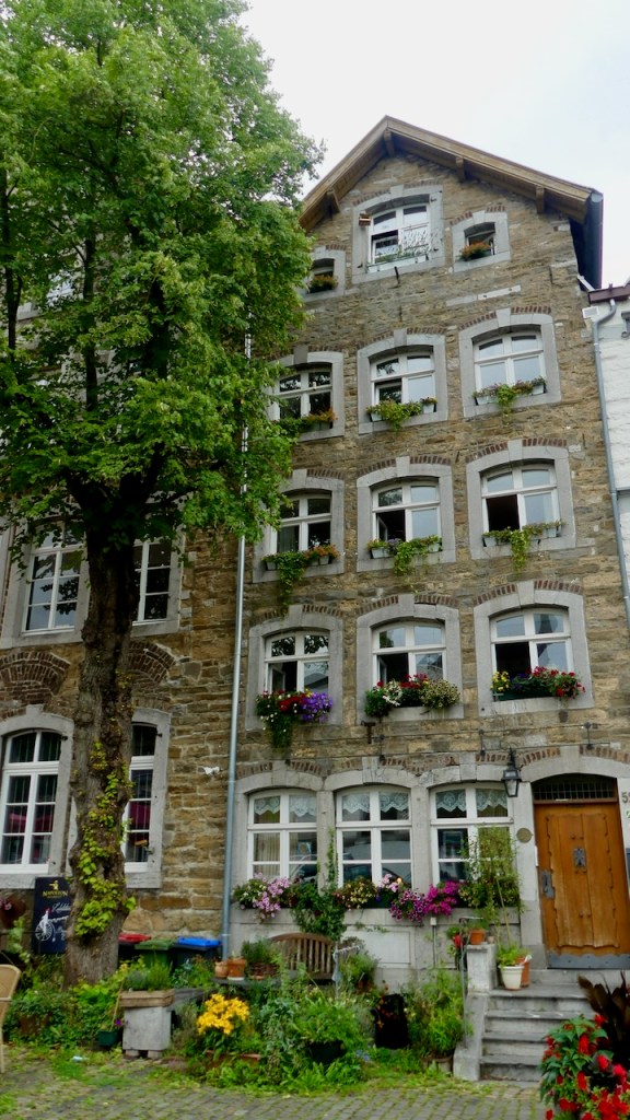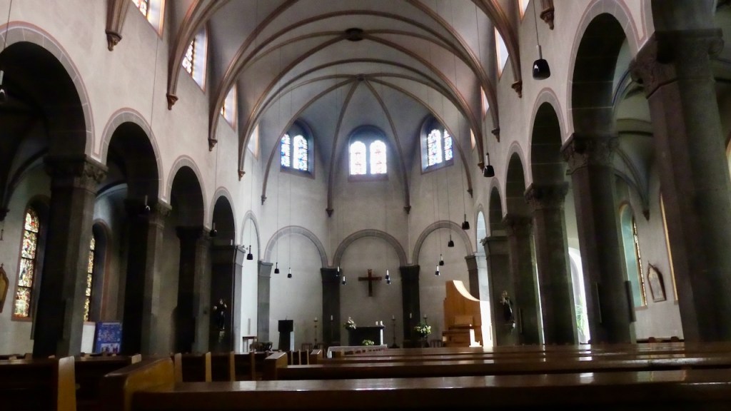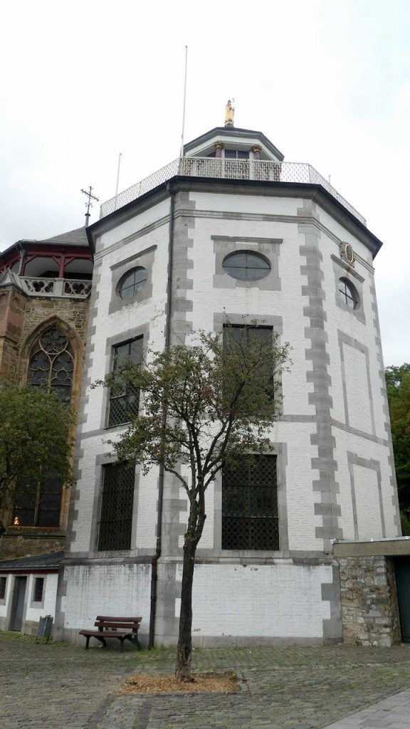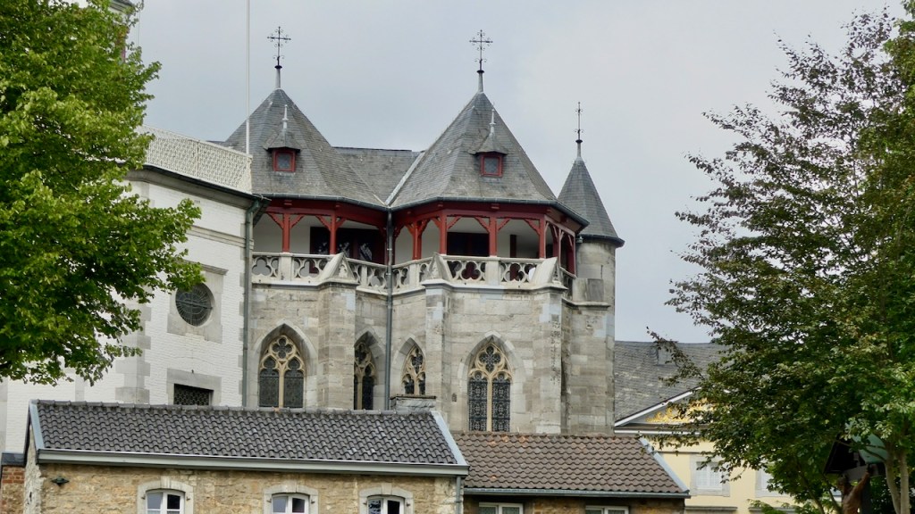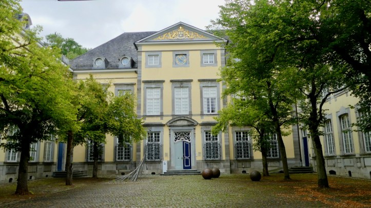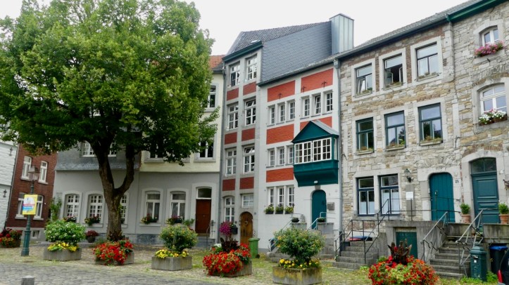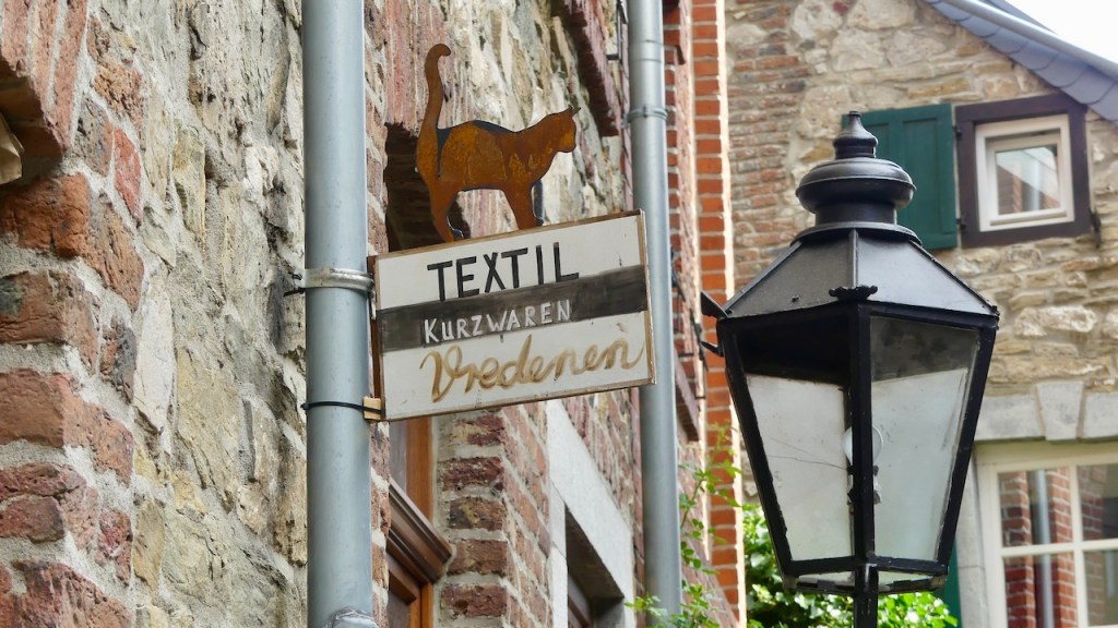 Die schöne Altstadt von Kornelimünster wird leider dominiert von Parkflächen. In der Kirche ist Messe, die Kunstausstellung in der Abtei öffnet erst um Zwölf außer einem wespenverseuchten Selbsbedienungscafe hat noch nichts geöffnet. Ich treibe mich in der Altstadt rum bis ich gründlich durchgefroren bin, rüttele noch einmal an der Tür einer Gaststätte und beschließe,dass ich genug gewartet habe.