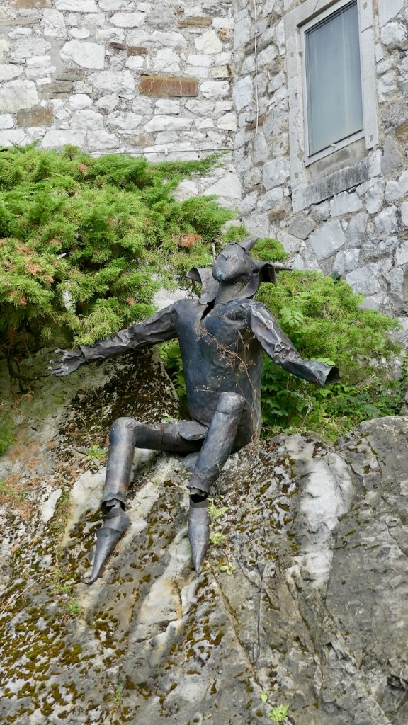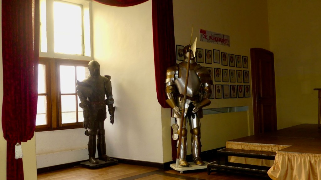 Es gibt sogar eine richtige Burg, ohne Wasser, auf der ich ausführlich herumklettere und die auch von innen besichtigt werden kann.