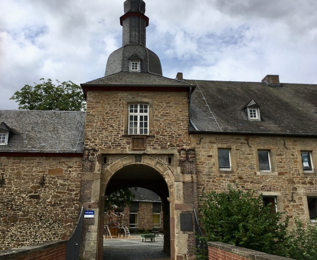 Burg Birgel ist eine Grundschule. Nachdem ich mich orientiert habe – es geht nach allen möglichen Seiten hoch und ein Wirtshaus gibt es nicht, packe ich am Grillplatz das Brötchen aus. So gestärkt, geht es auch wieder den Berg hoch.