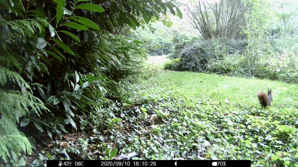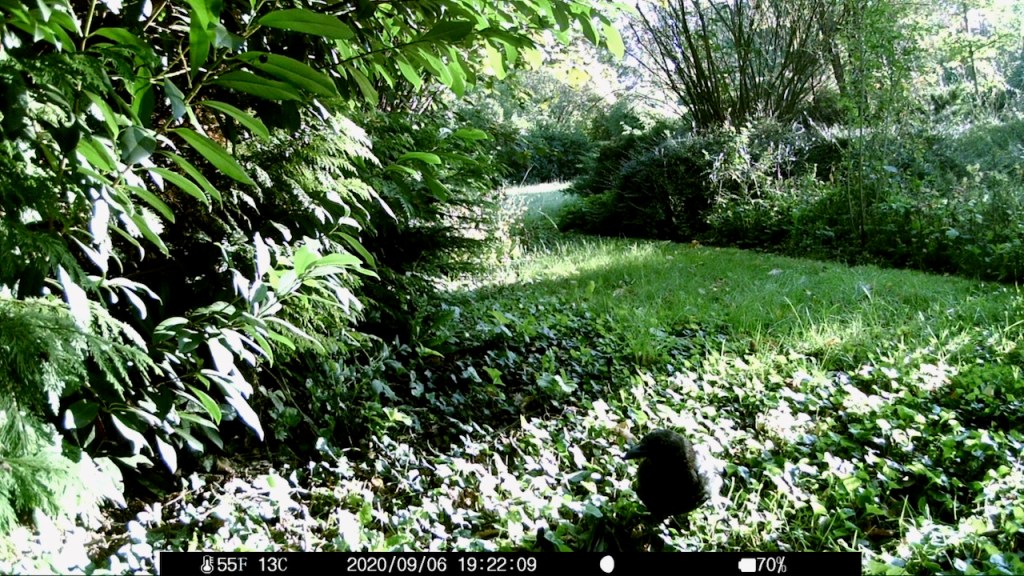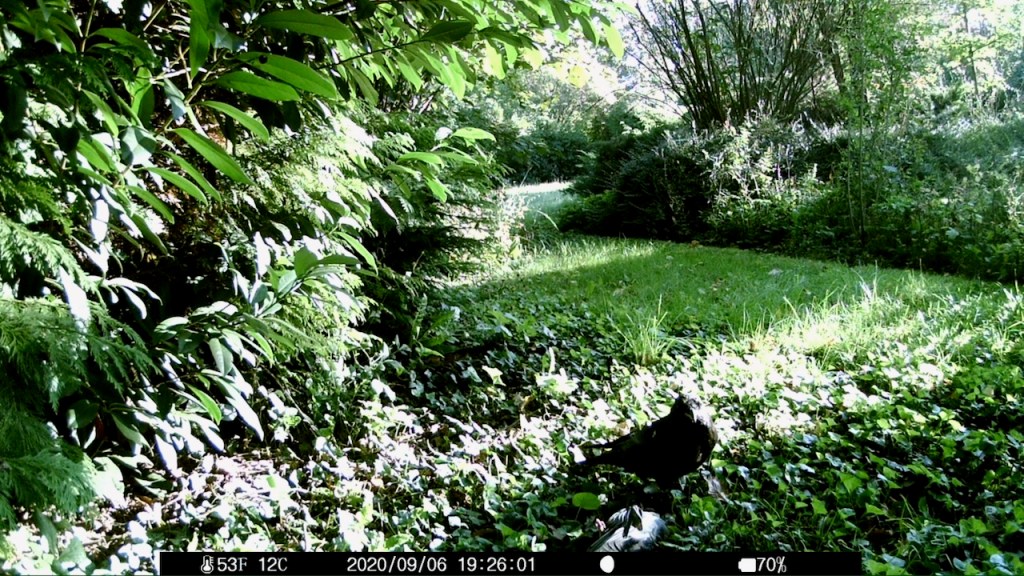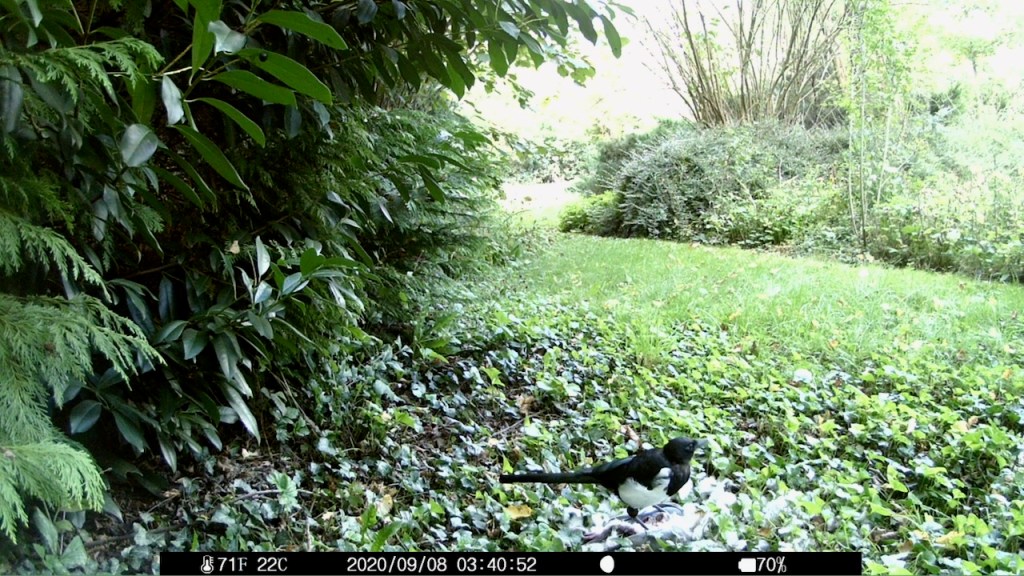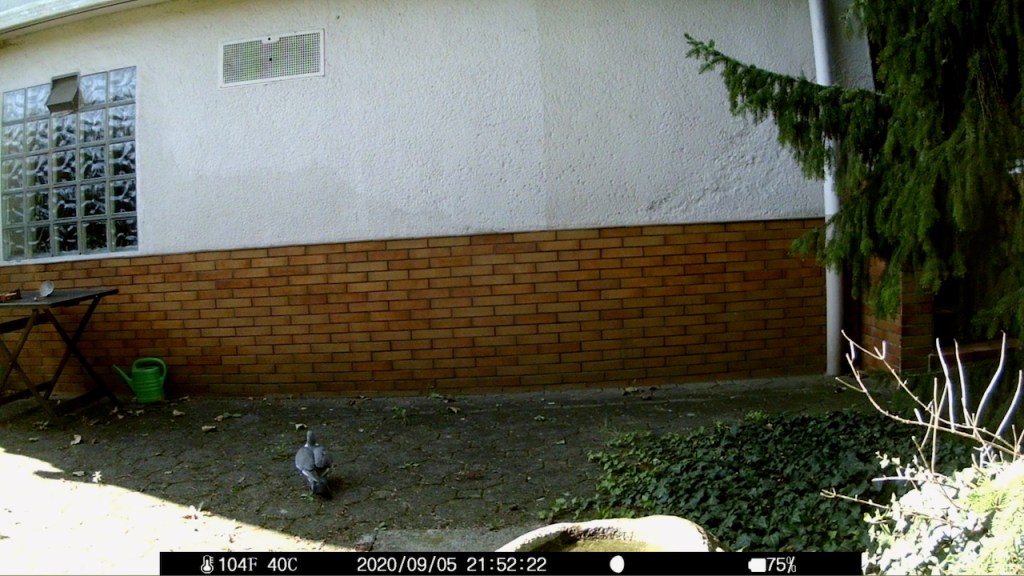 Vor einiger Zeit lag eine tote Ringeltaube im Garten, die Brust sorgfältig filetiert, ohne Kopf. Ich ließ sie liegen und am nächsten Tag war sie weg. Ich hätte natürlich gern gewusst, wer sie abgeschleppt hat. Da war doch noch die Wildcam. Die lag im Regal, weil im Garten an schönen Tagen zu viel Publikumsverkehr ist. Fotos der Mieterin im Liegestuhl sind rechtlich etwas auf der Kippe, also lasse ich das.