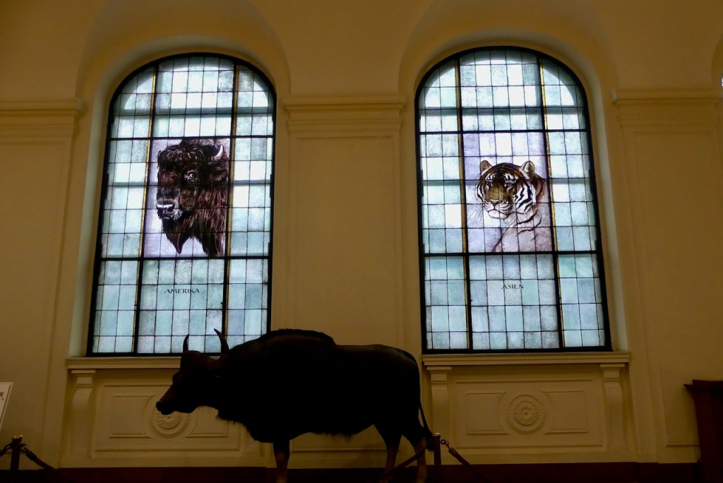 Das Horn des Nashorns wurde vor ein paar Jahren bei einem Einbruch geklaut. In weiser Voraussicht, hatten die Präparatoren es allerdings schon durch ein Plastikimitat ersetzt. Ob nun einige chinesische Herren versuchen, ihre Männlichkeit mit Plastikschnitzeln aufzupeppen? Wohl bekomm’s.