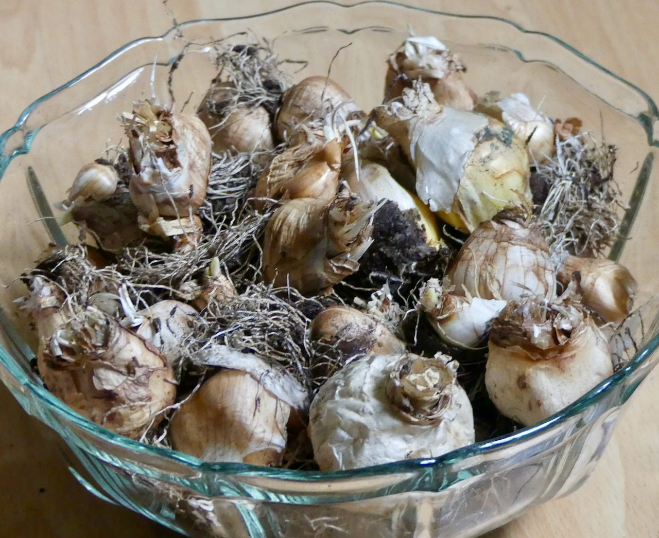 Lohn der Mühe: Eine Frau aus dem Ort hatte Zwiebeln von Osterglocken zu verschenken. Zu meiner großen Freude gab es noch ein paar Hyazinthen dazu.