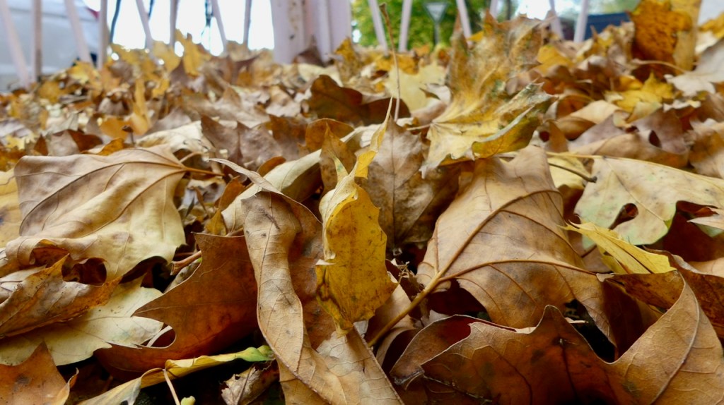 Eine Stunde Laub schaufeln, die sportliche Herausforderung des Tages und nach 10 Minuten sieht es wieder aus wie vorher.
