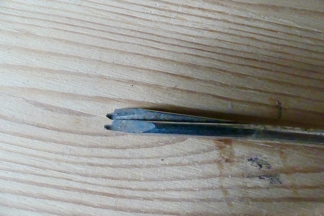 Bibo, es gibt Schrauben, die keinen (Kreuz-)Schlitz haben, sondern 2 kleine Löcher im Kopf. Da hinein steckt man die Spitzen und schraubt die Schraube raus oder rein.
