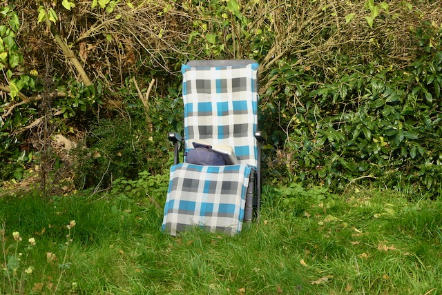 Nachmittags: Ich habe vom Klimawandel profitiert und im Garten gelesen, bis sich die Sonne hinter die Hecke verzogen hat. Ein leicht zerfledderter Admiral taumelte um mich herum. Der Wanderfalter hängt auch hier fest.